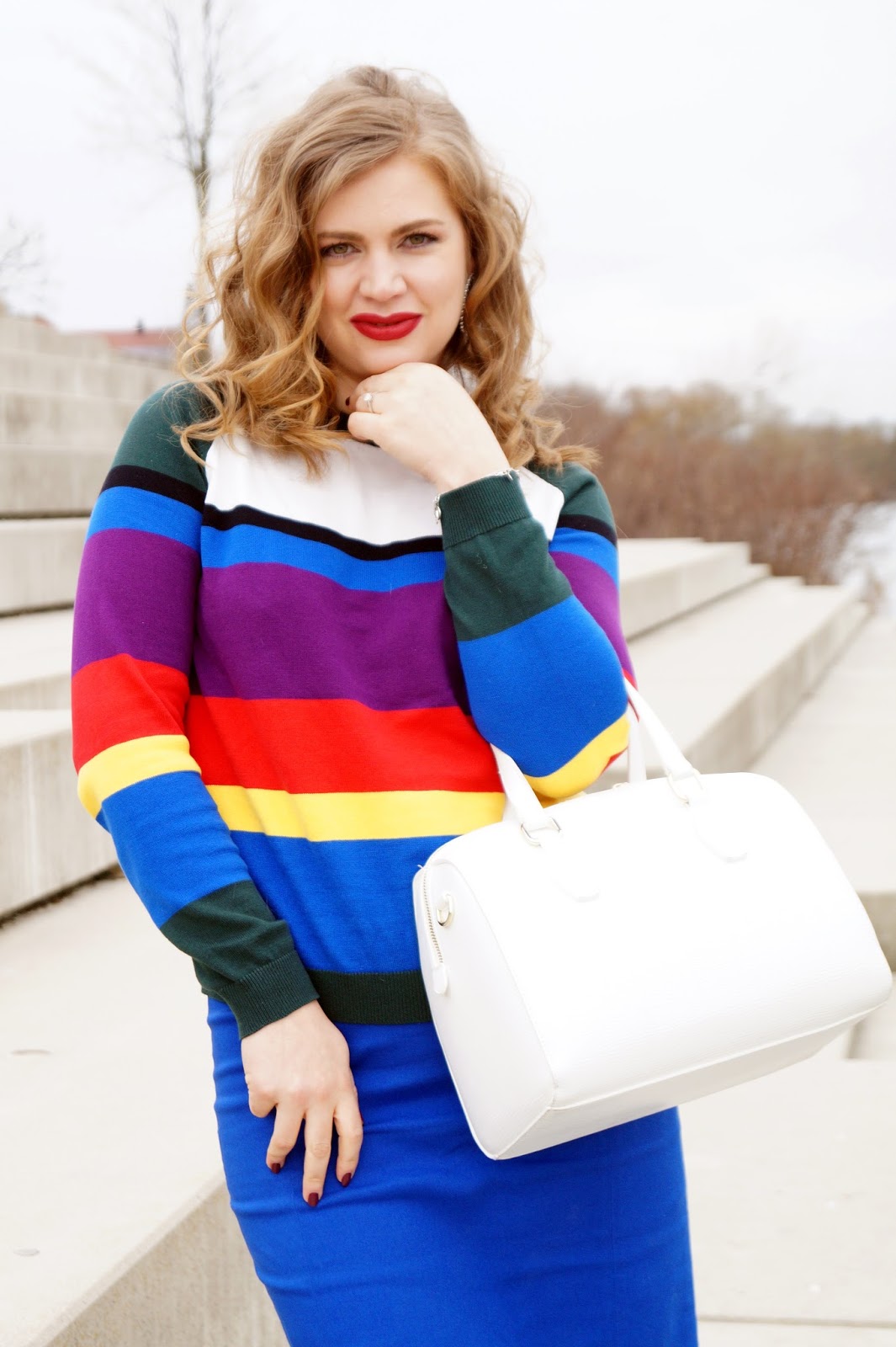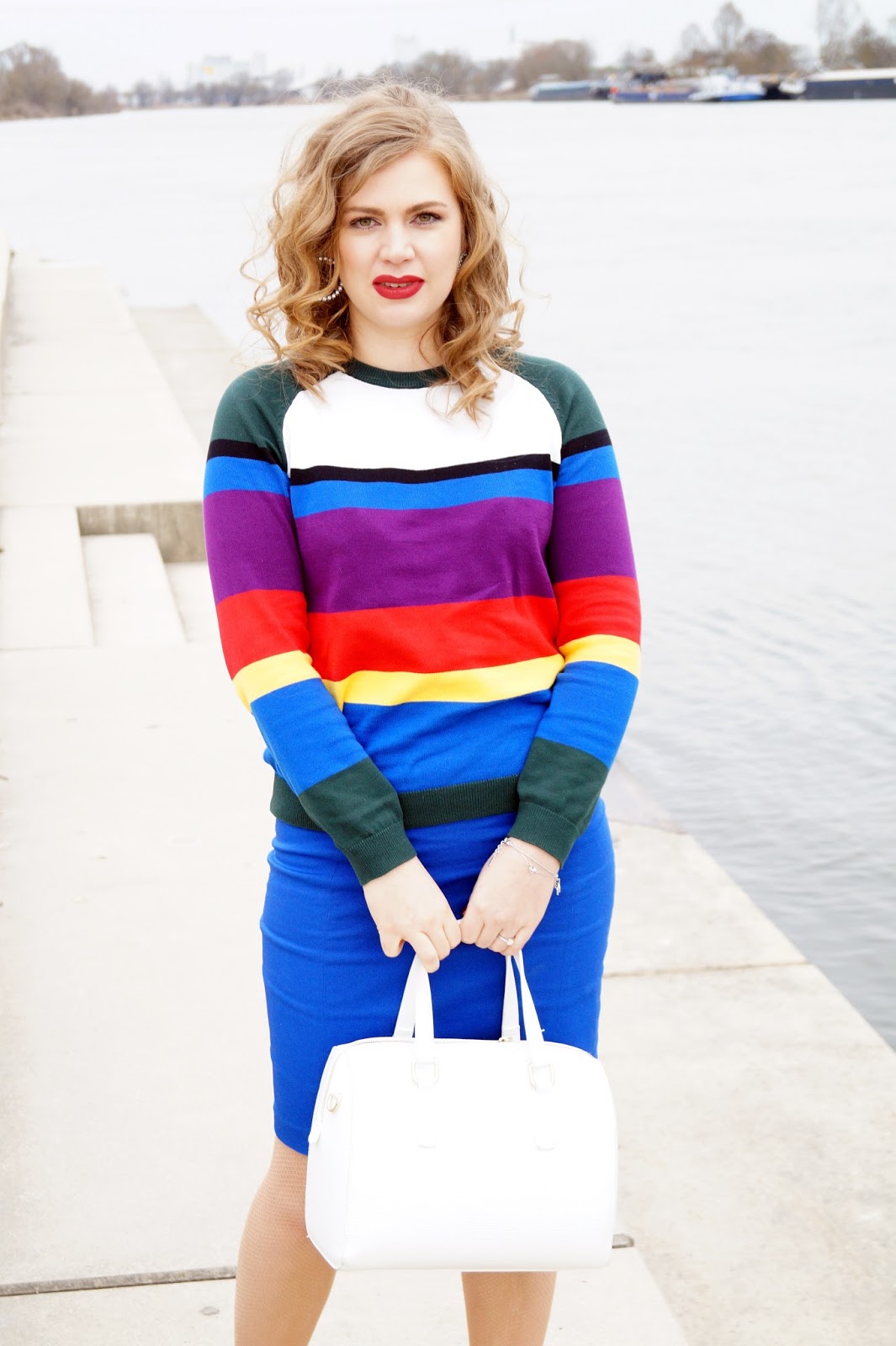 This sweater I have found last week was perfect to satisty my hunger for colors. It is from esmara by Lidl and was designed by Heidi Klum. It is such a veratile sweater you can combine to many colors and it looks cute with skirts and pants as well.