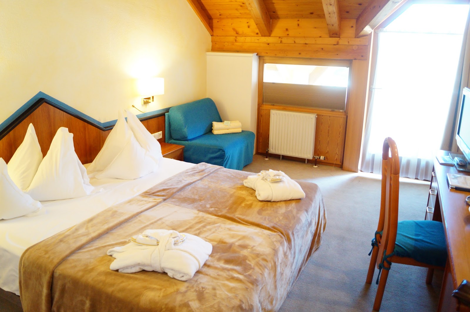After arriving at our hotel (the Löwenhof Hotel) and checking-in in the afternoon we first had coffee and a panini. Afterwards we went to the room and took a nap before heading to the pool.
