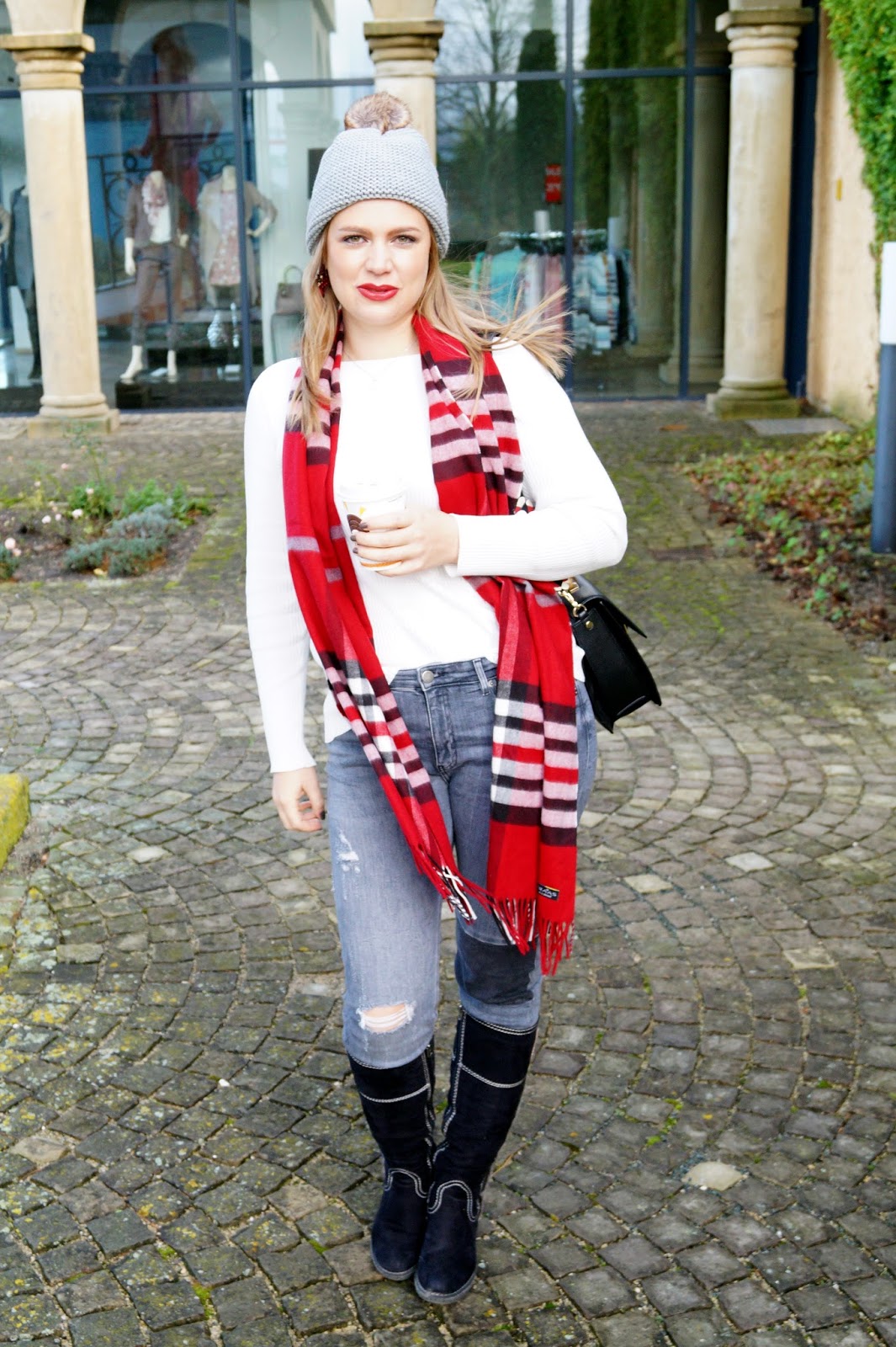 The look above includes my typical fall color combination. I really love dark blue. It reacts much nicer to my skin tone than black and I think it looks gorgeous styled with a tan hue. Over the last view years – since the color started to get this popular – I built quite the selection of pieces in this color range and I love to combine them and wear them. The color really pops with red and looks super exquisite with black and ultra modern with white.