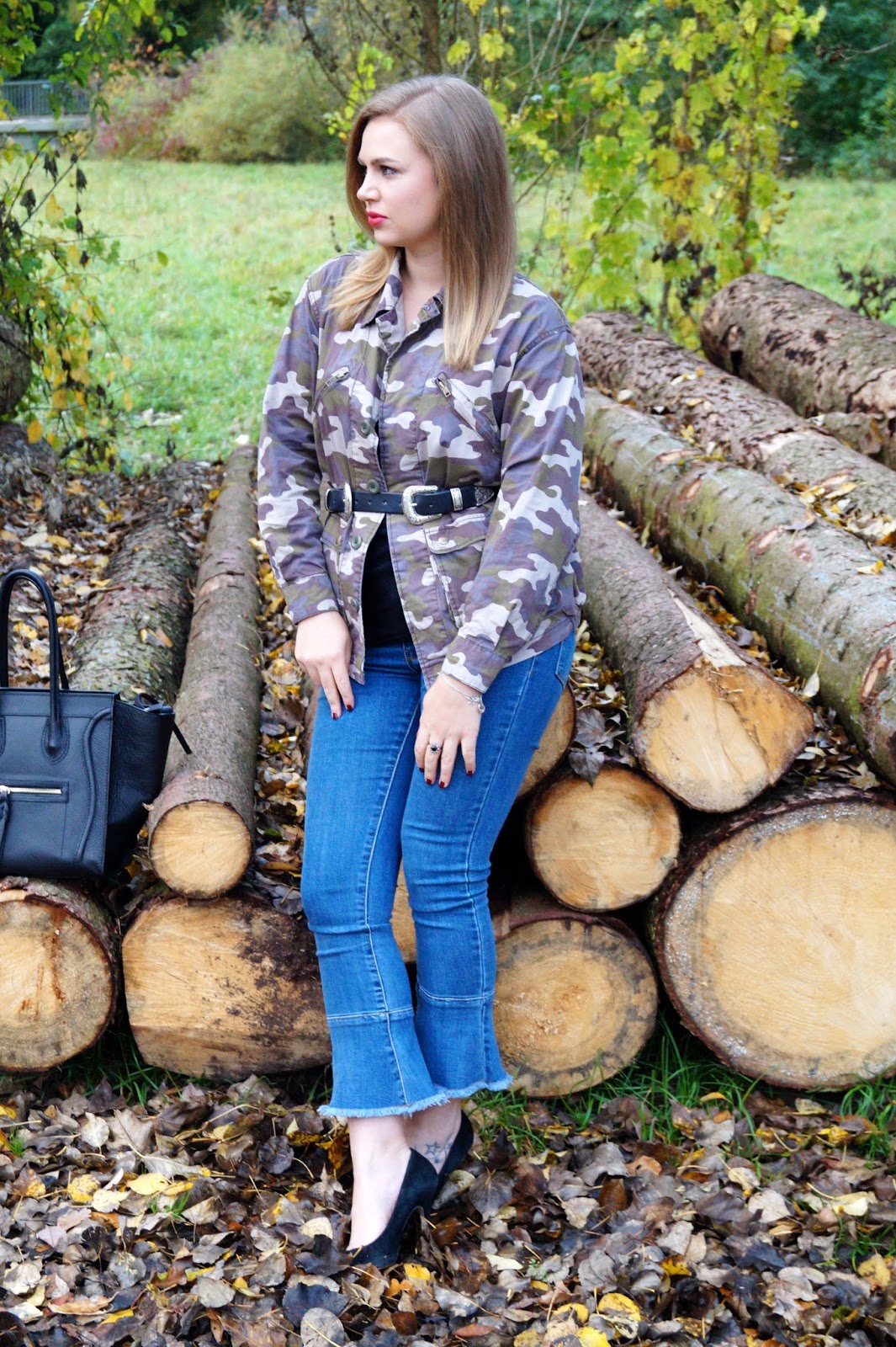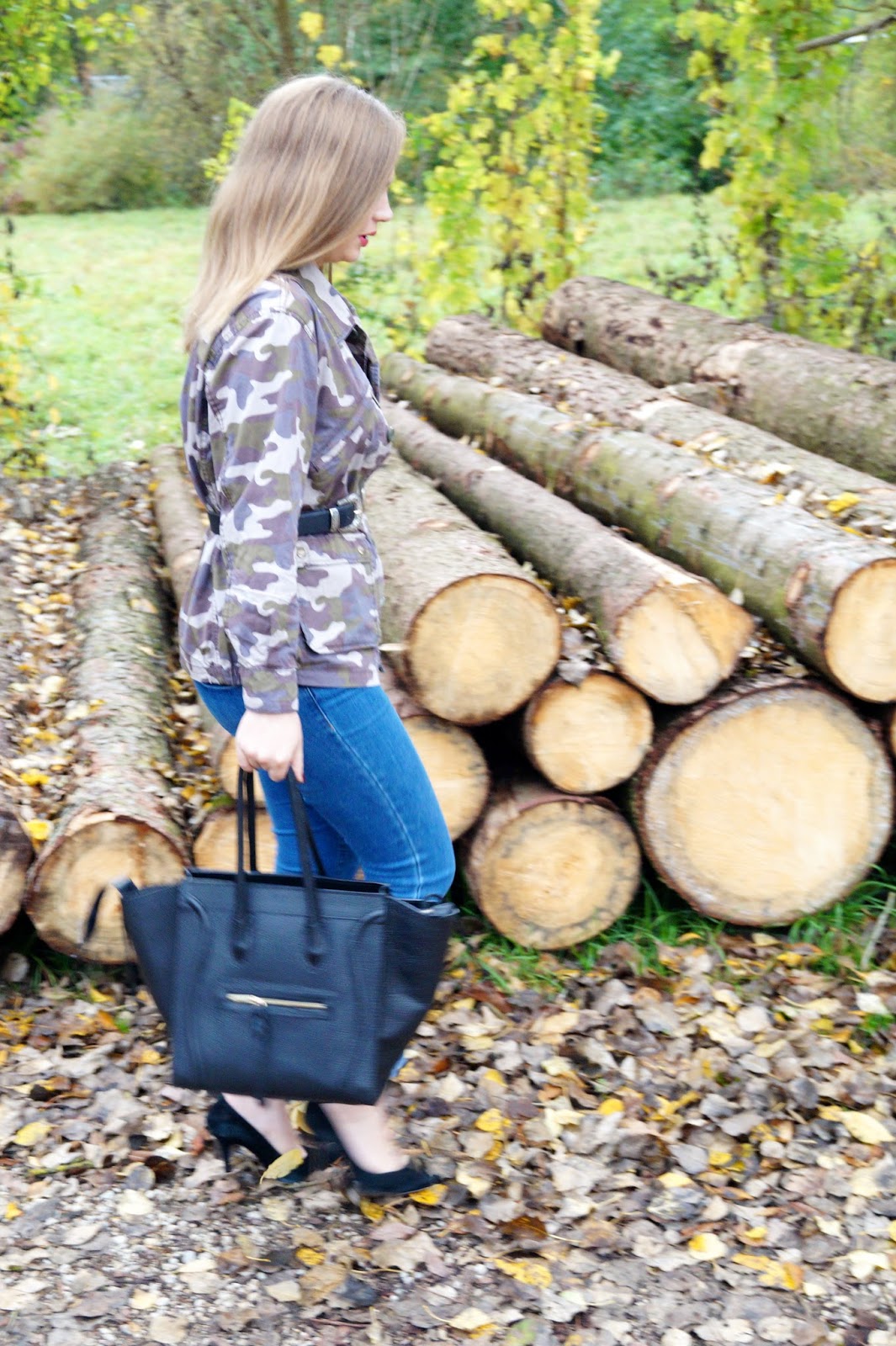 I paired the jacket with a simple shirt underneath and to get some focus and a slimmer silhouette I used my double buckle western belt as a waist belt. Also wear a nice lipstick (mine is from Maybelline – color Dark Rosewood) and heels if you want to look a little more chic and feminine with the camouflage print.
