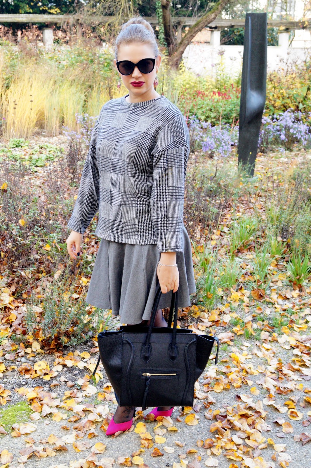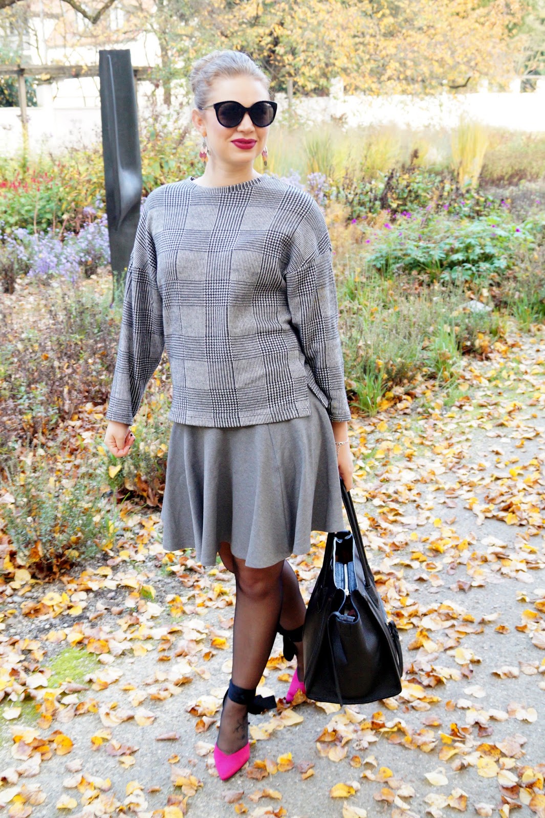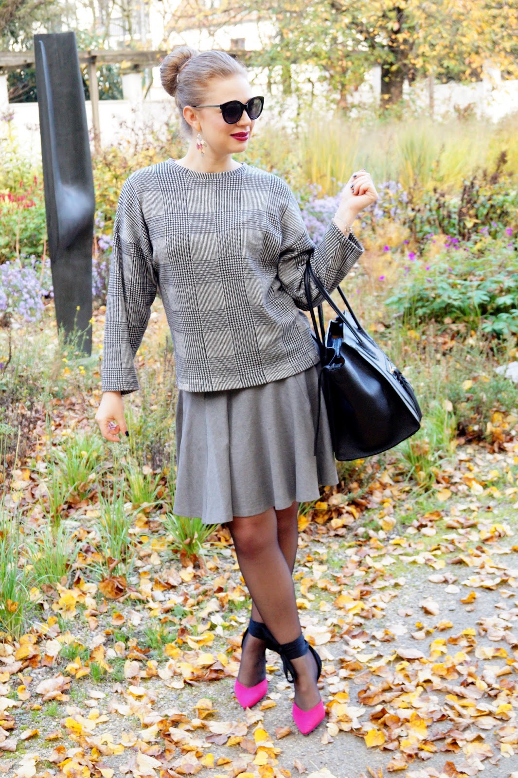 Since I have worn gingham non-stop throughout the summer I switched checks for fall. My new love now is glencheck. Another kind of plaid. I got the sweater from Zara and I love it. It is oversized but not too big so you can wear it with skirts and pants. The grey is a super versatile color for fall.