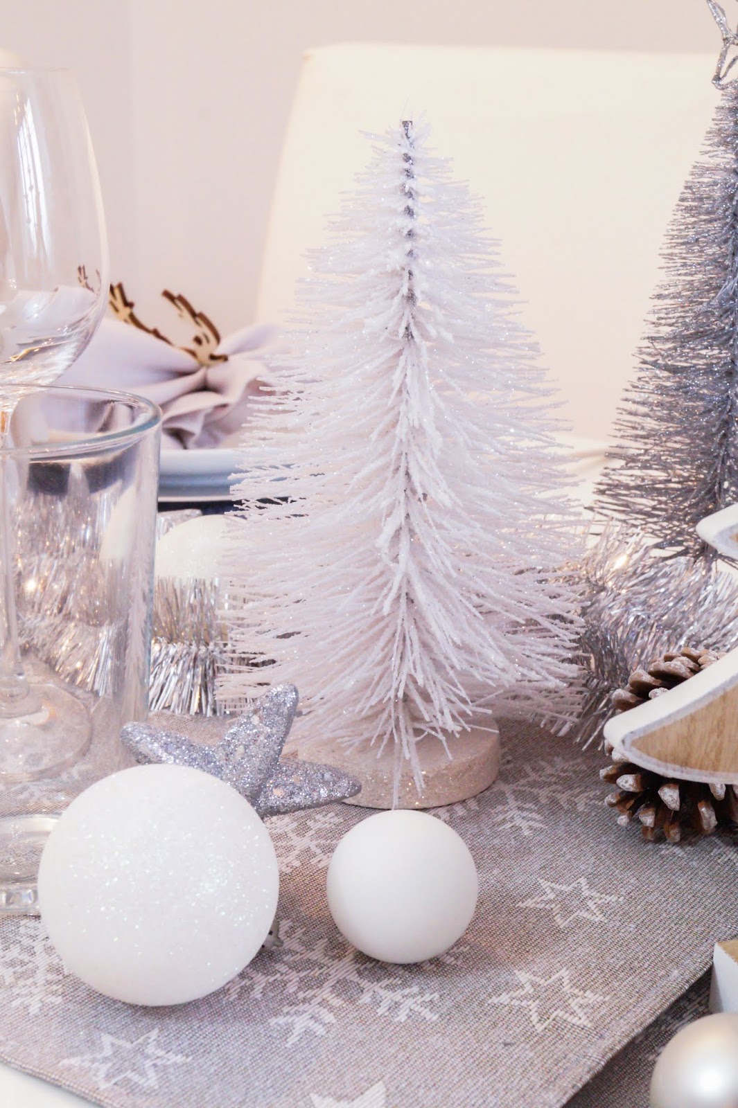 Anther corner in our family room I enjoy decorating is our coffee table / tv area. We do have quite the space to put lots of decor so why not use it for the most wonderful time of the year. I went with the lighter pink version of the ornaments and created a little winter wood theme. With lots of different trees and deers. The gingham table runner is one of my favorites for this year since it has my most favorite pattern but also includes a Christmas embroidery on both sides. I also always keep our advent wreath with the candles on our coffee table. Evey Sunday starting the 2nd of December there is going to be lit one candle and after the 4th Christmas is here.