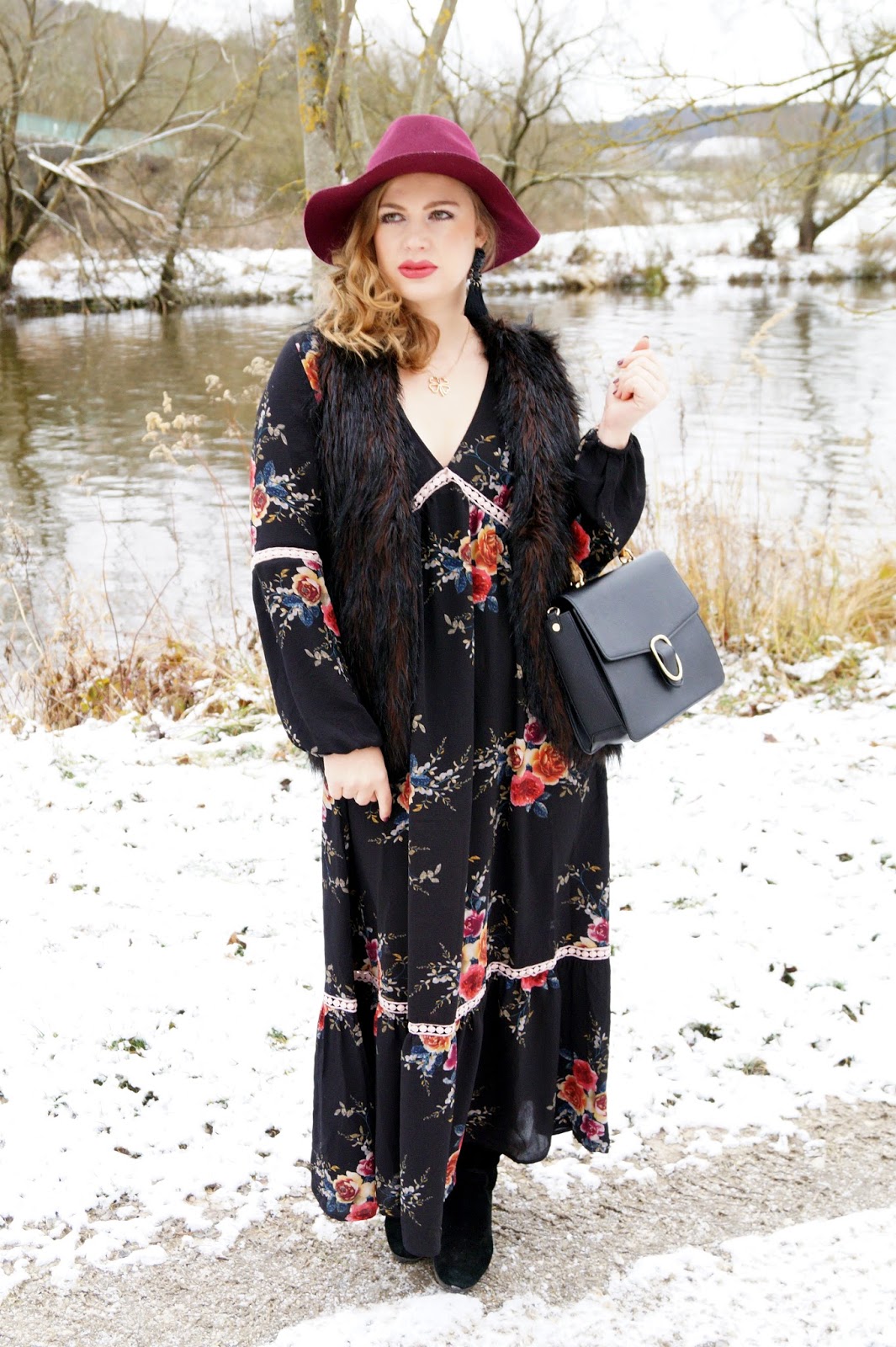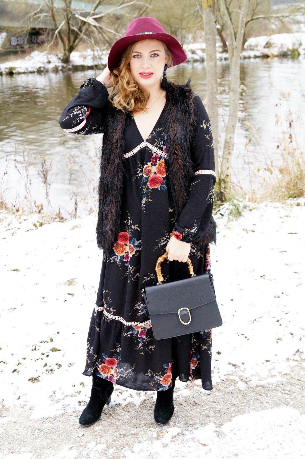 you all might know by now that I am a real dress lover and I have always prefered dresses over pants. After I have seen this dress I had to have it cause is has just the right romantic boho vibe and also I love a good flower print no matter what. So now that it is cold and snowy outside wearing dresses isn´t quite comfortable cause of the cold. But there are possibilites which make it a little warmer.