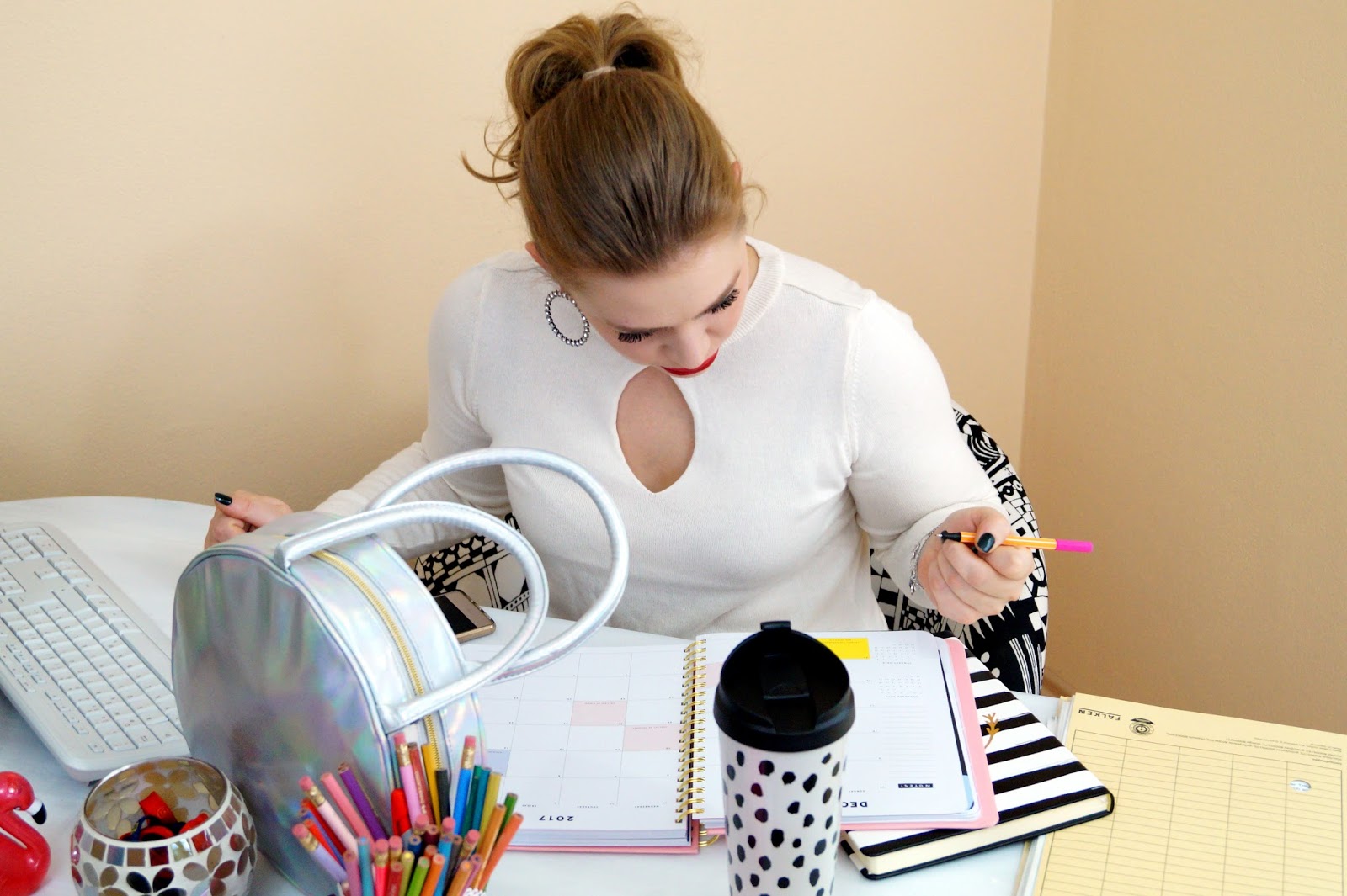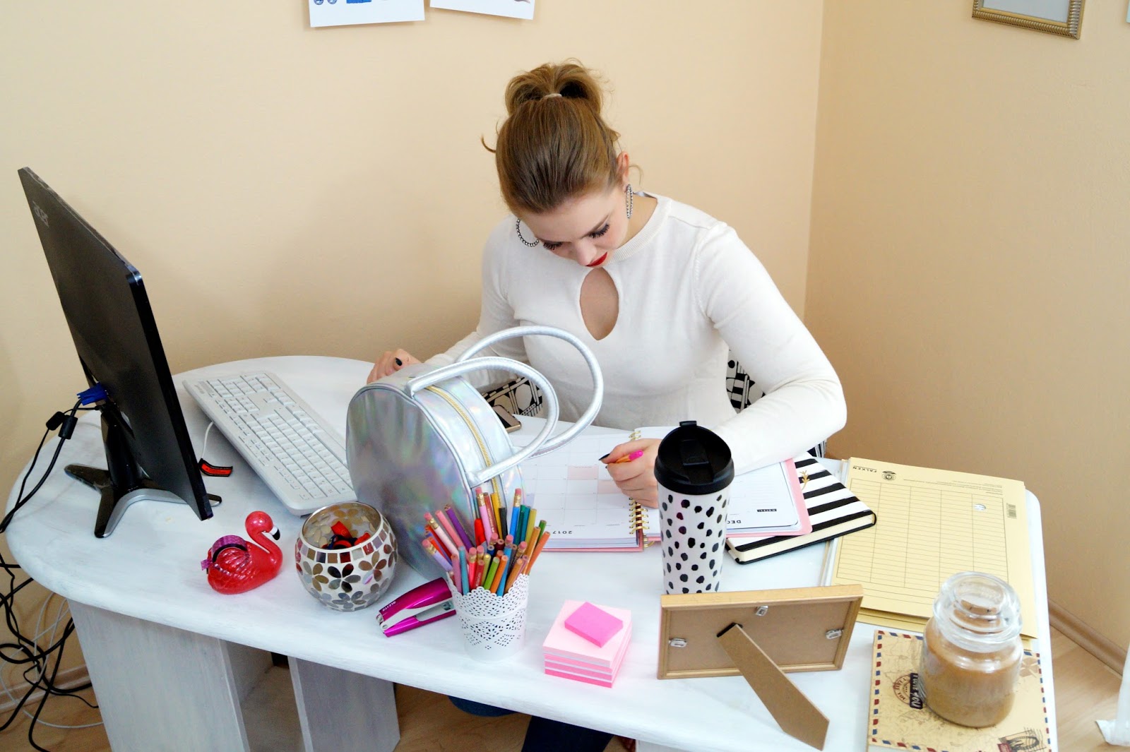 This would be the normal area in an office but what is normal these days!!! The desk we have in our office is really old. I already used it as a school girl so this is a real sustainable piece I have used for more than 15 years now. Initially it was dark brown but I stained it white with a chalk color to achive this used look and I still like how it turned out. The three drawers on the left are used for all of my notebooks and computer related cables other than that they are empty. To the left of the desk is a little station that hides all the cables, those are a lot!!! And the two little side tables are also perfect to for the printer to sit on. I also have a little fashion and style inspo board with tons of outfits I have loved to stay inspired.