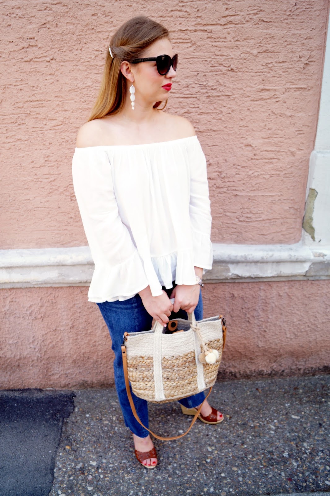 a pair of jeans I recently got from the H&M sale, a seagrass tote