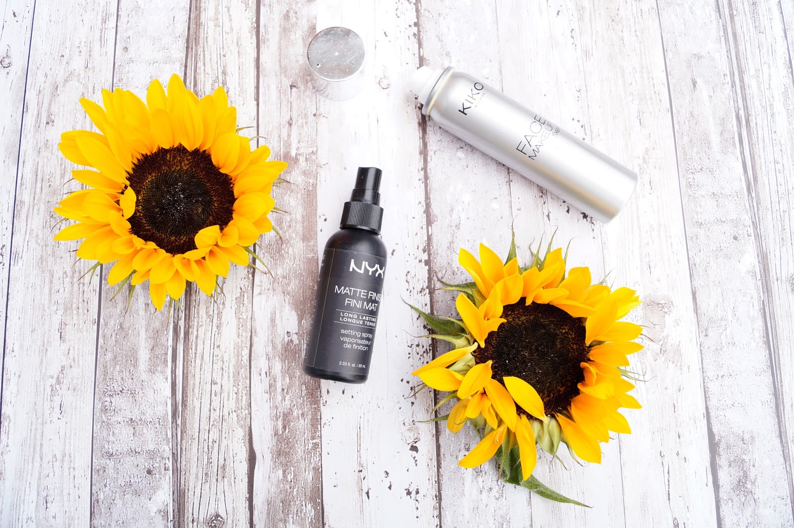 I am always switching between the Kiko Milano setting spray (the smell is so good) and the nyx Matte finish setting spray . They are both pretty equal.