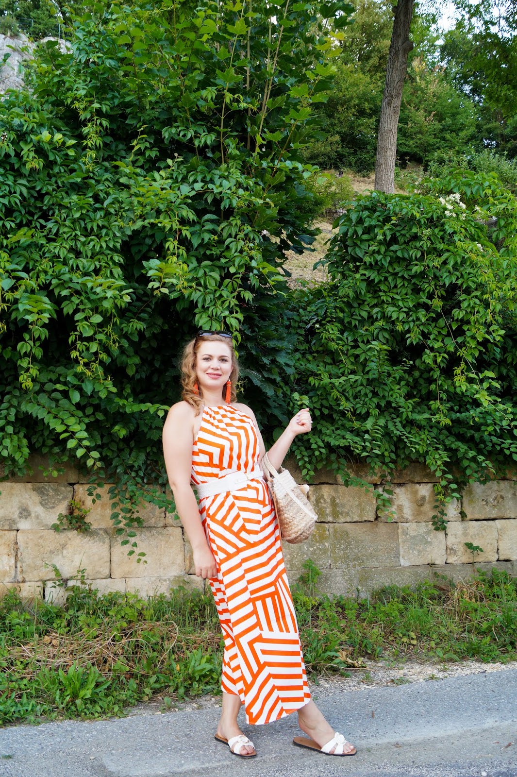 dress can´t remember where it is from simiar color theme here, here and here / white braided waist belt H&M old similar here / slides H&M sold out similar here, here and here / bag Mango last season similar here and here / tassel earrings old similar here and here