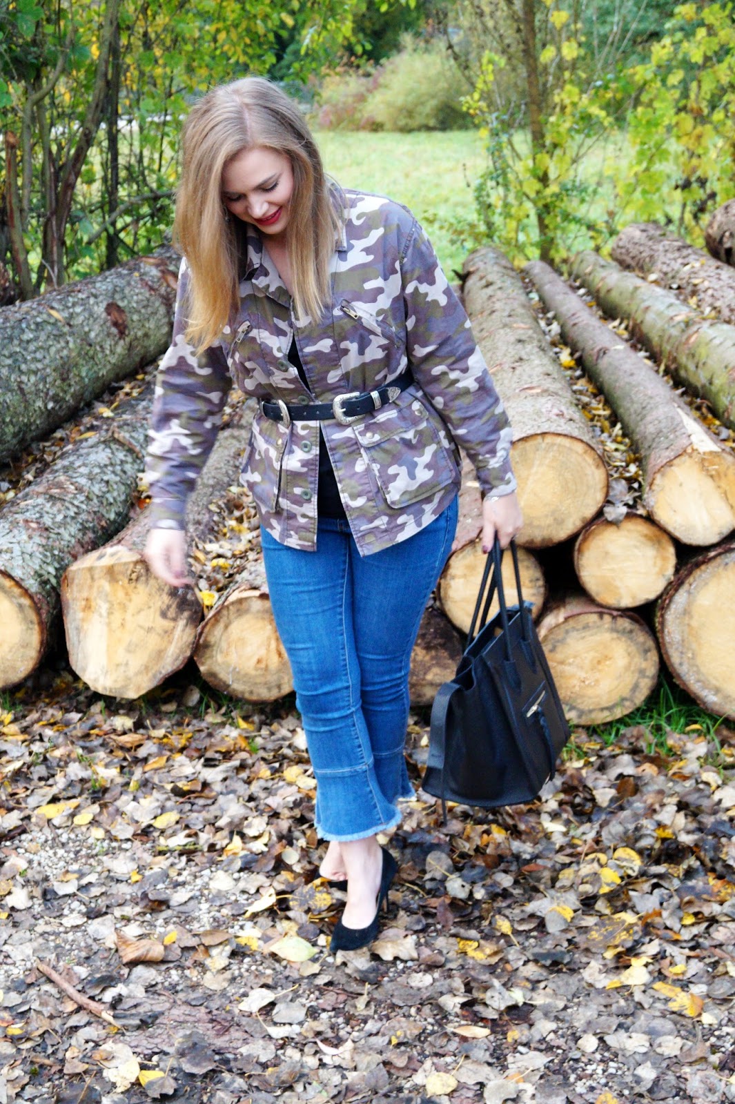 I paired the jacket with a simple shirt underneath and to get some focus and a slimmer silhouette I used my double buckle western belt as a waist belt. Also wear a nice lipstick (mine is from Maybelline – color Dark Rosewood) and heels if you want to look a little more chic and feminine with the camouflage print.
