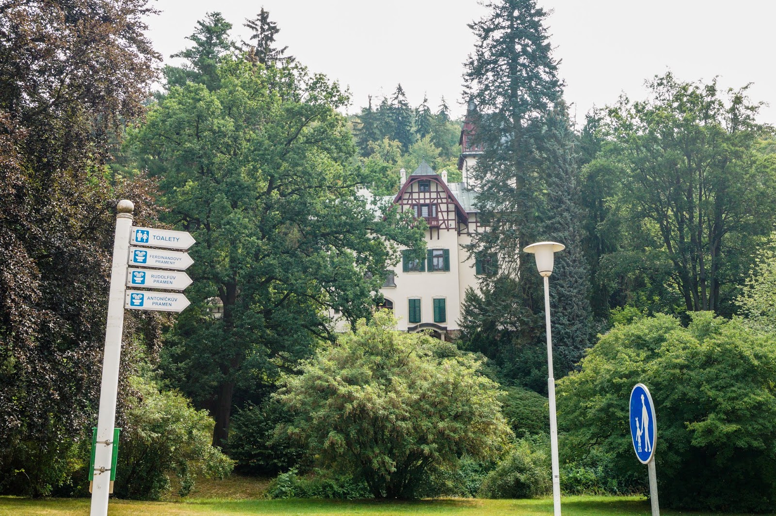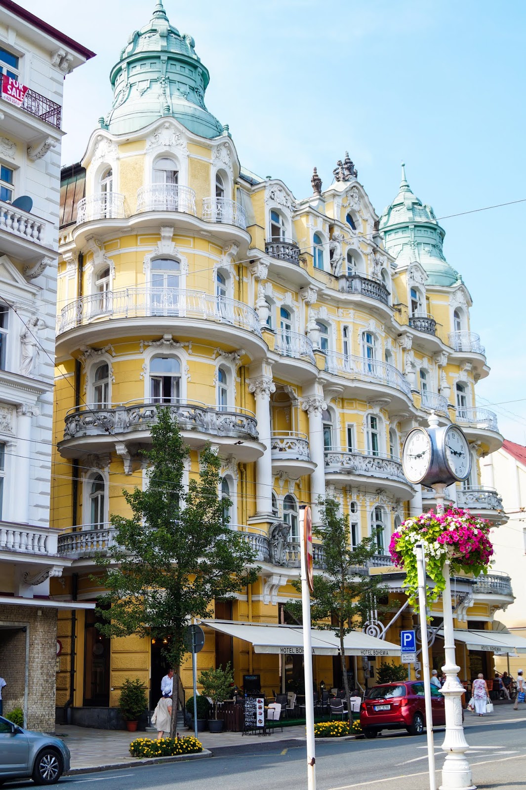 On our way back we went through the collonnade (this building is from 1827 and the arches and windows are so beautiful). This was the main area of Marienbad in the earlier years where everybody gathered when something happened or when there was a celebration. Like a village square. Also located here is a „Singing“ fountain. The fountains plays music at every odd hour.