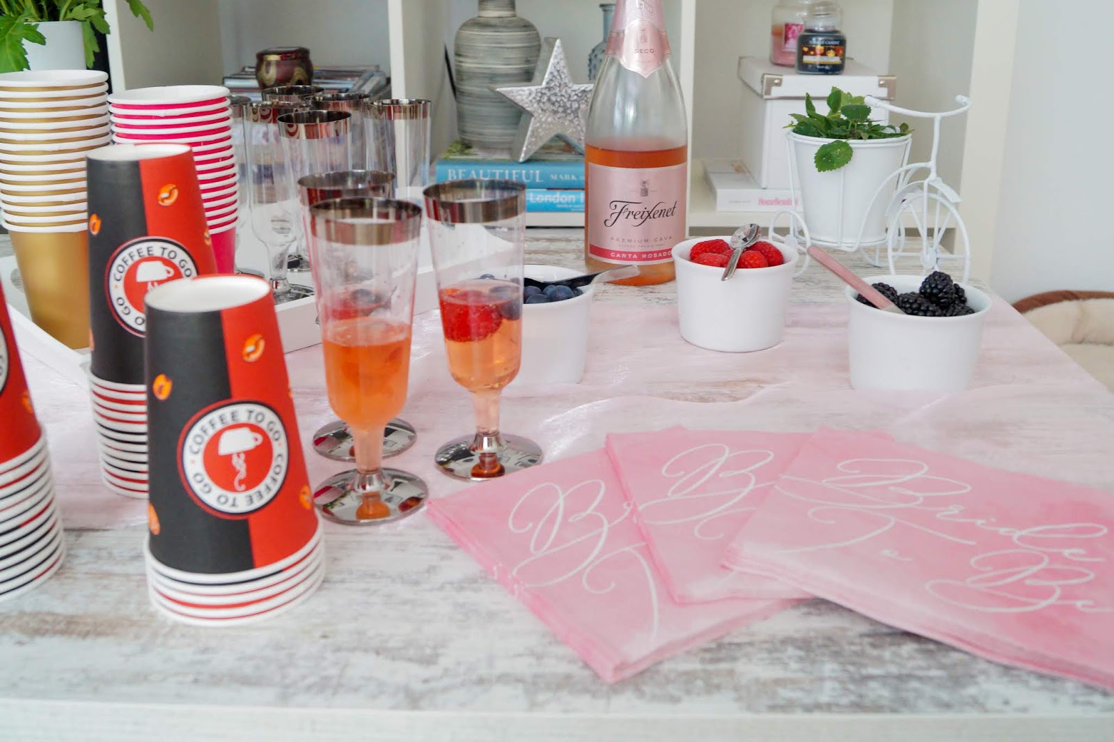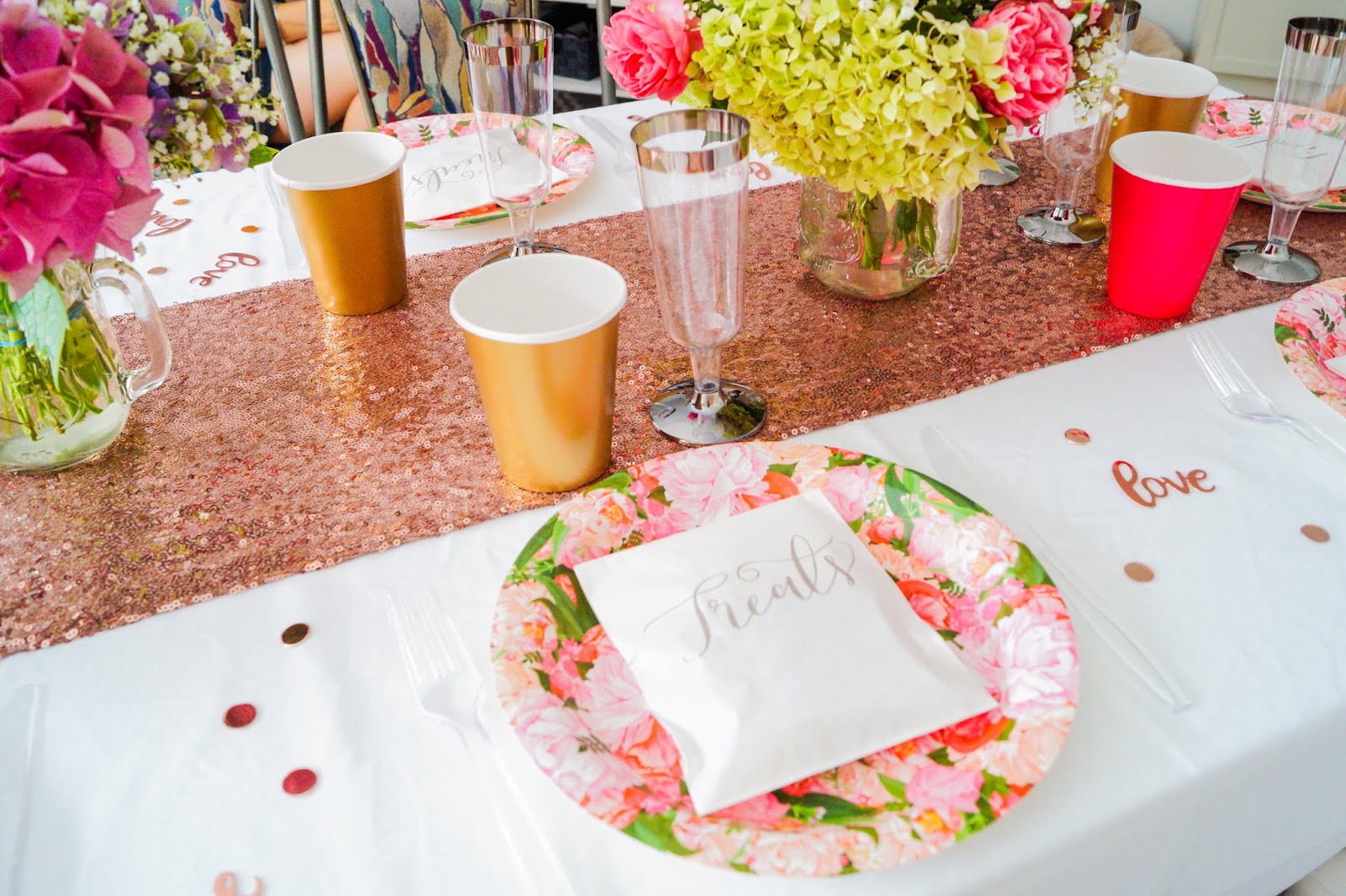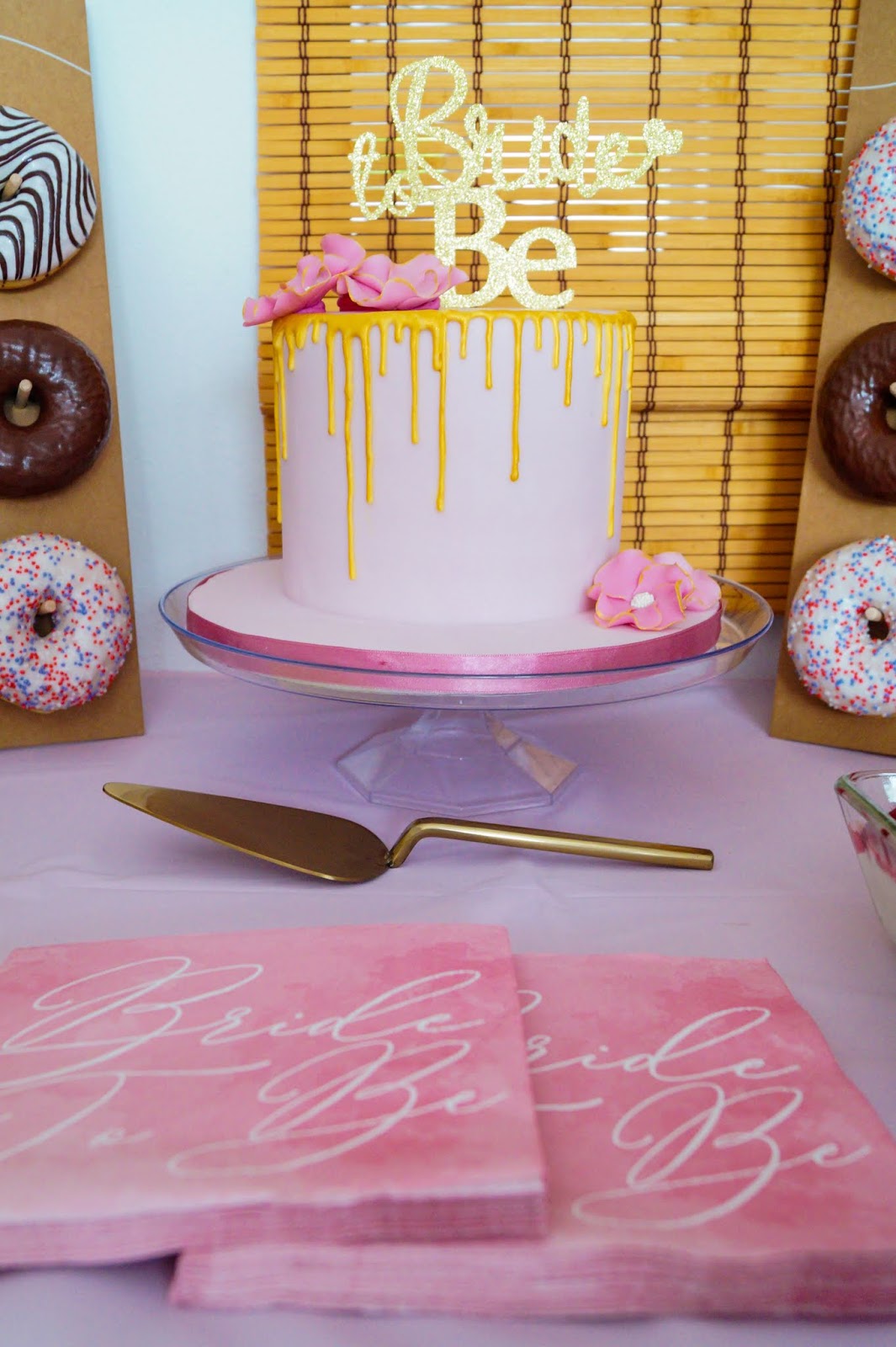 invitations kartenmacherei.de Vintage Rose in blush / sequin table runner My Bridal Shower / paper plates Boho My Bridal Shower / cups pink and gold My Bridal Shower / mason jars amazon / transparent cutlery drug store similar here / doughnut wall My Bridal Shower / paper subjects My Bridal Shower / confetti love here and confetti dots here My Bridal Shower / Miss to Mrs garland amazon / table runner blush My Bridal Shower / pink ruffle table clothing My Bridal Shower /