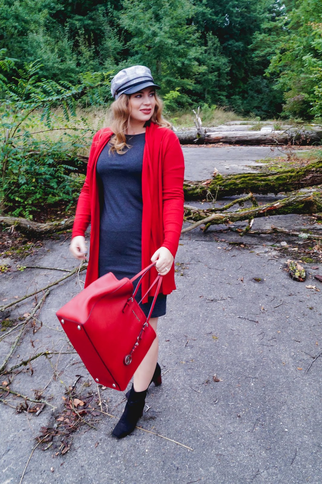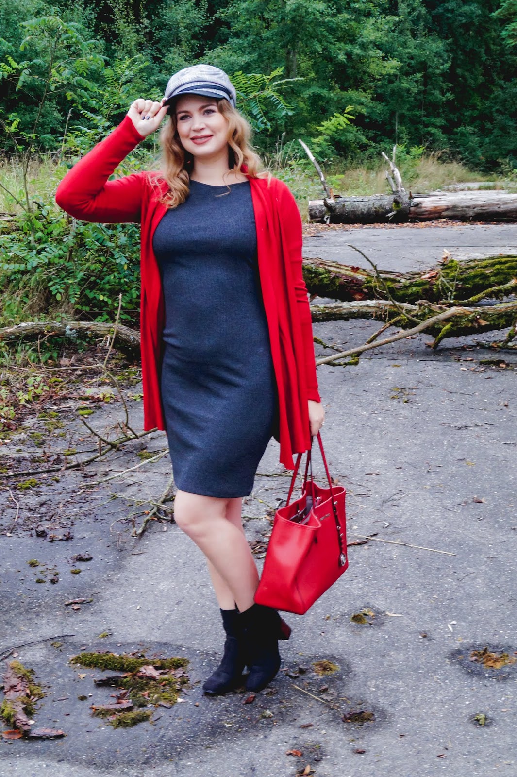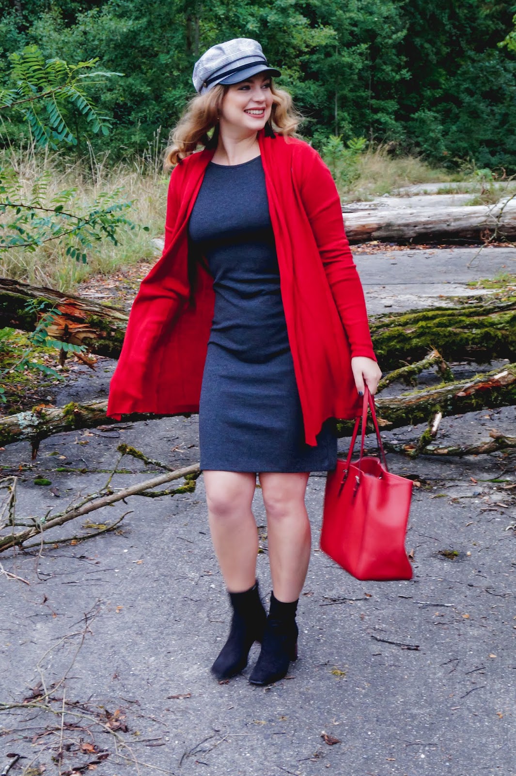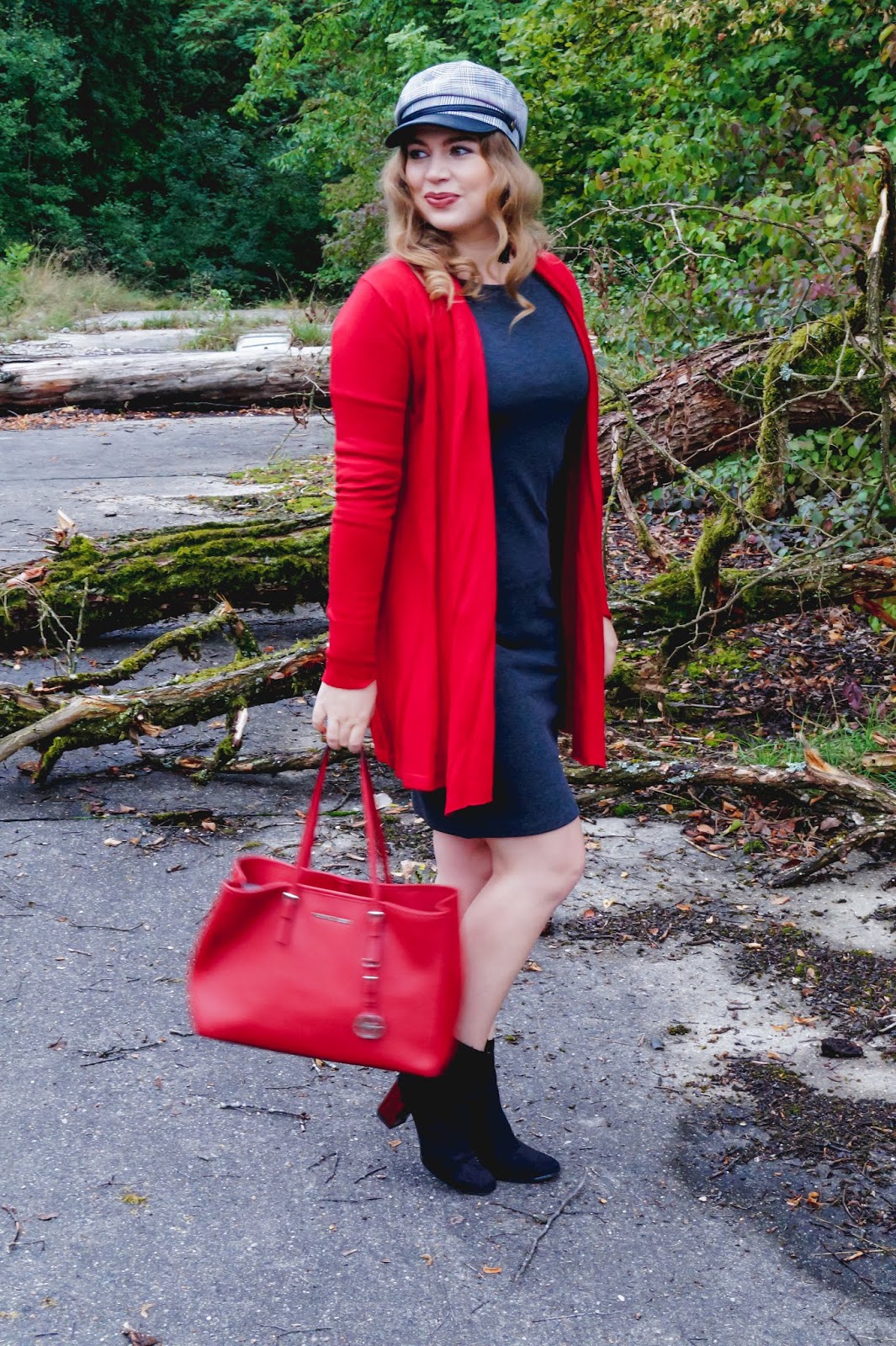 I paired it with a cardigan in a gorgeous red shade and a matching tote from Michael Kors I got some years ago. Also are contrast heel booties still a thing? I do have this adorable pair I got from Tamaris last Winter. I still love it but haven´t seen much for this season?! But for sure bakerboy hats or cadett caps are a huge trend and still going strong. I also added 3 new colors to my collection including this adorable gingham print cap. It includes all the colors I am wearing.
