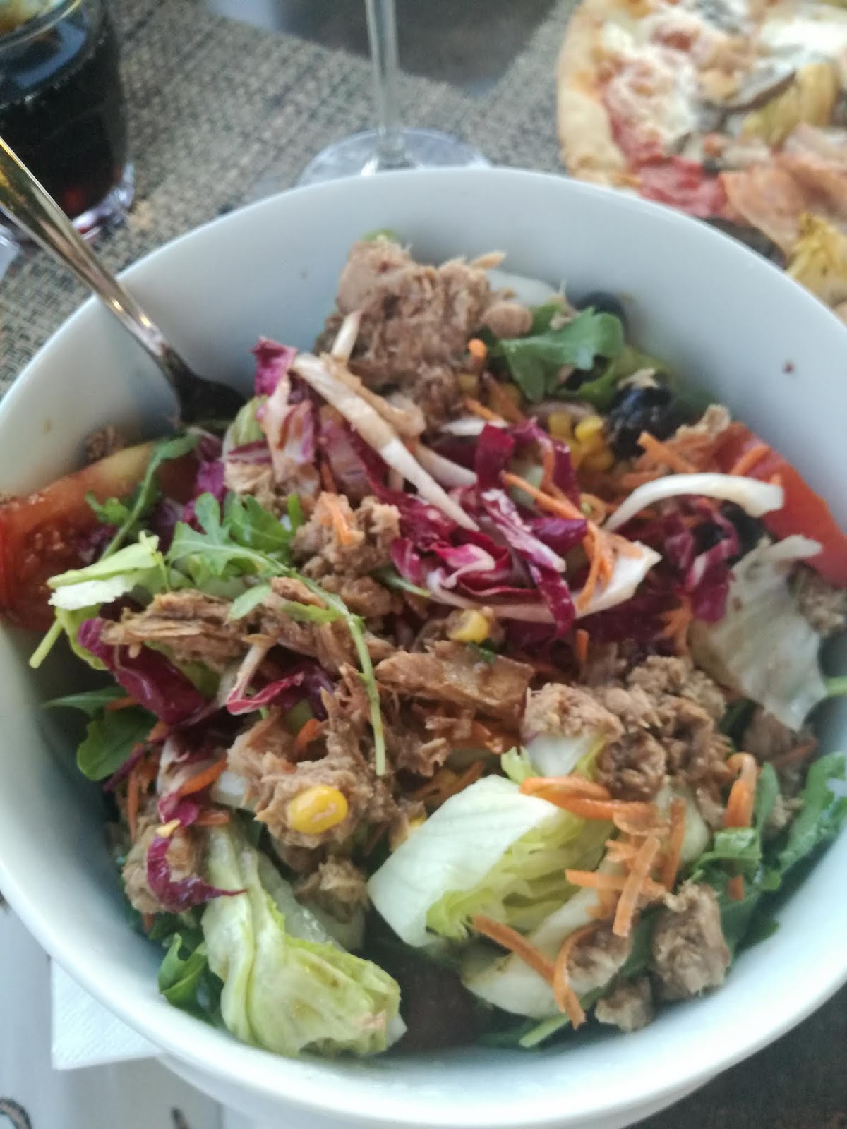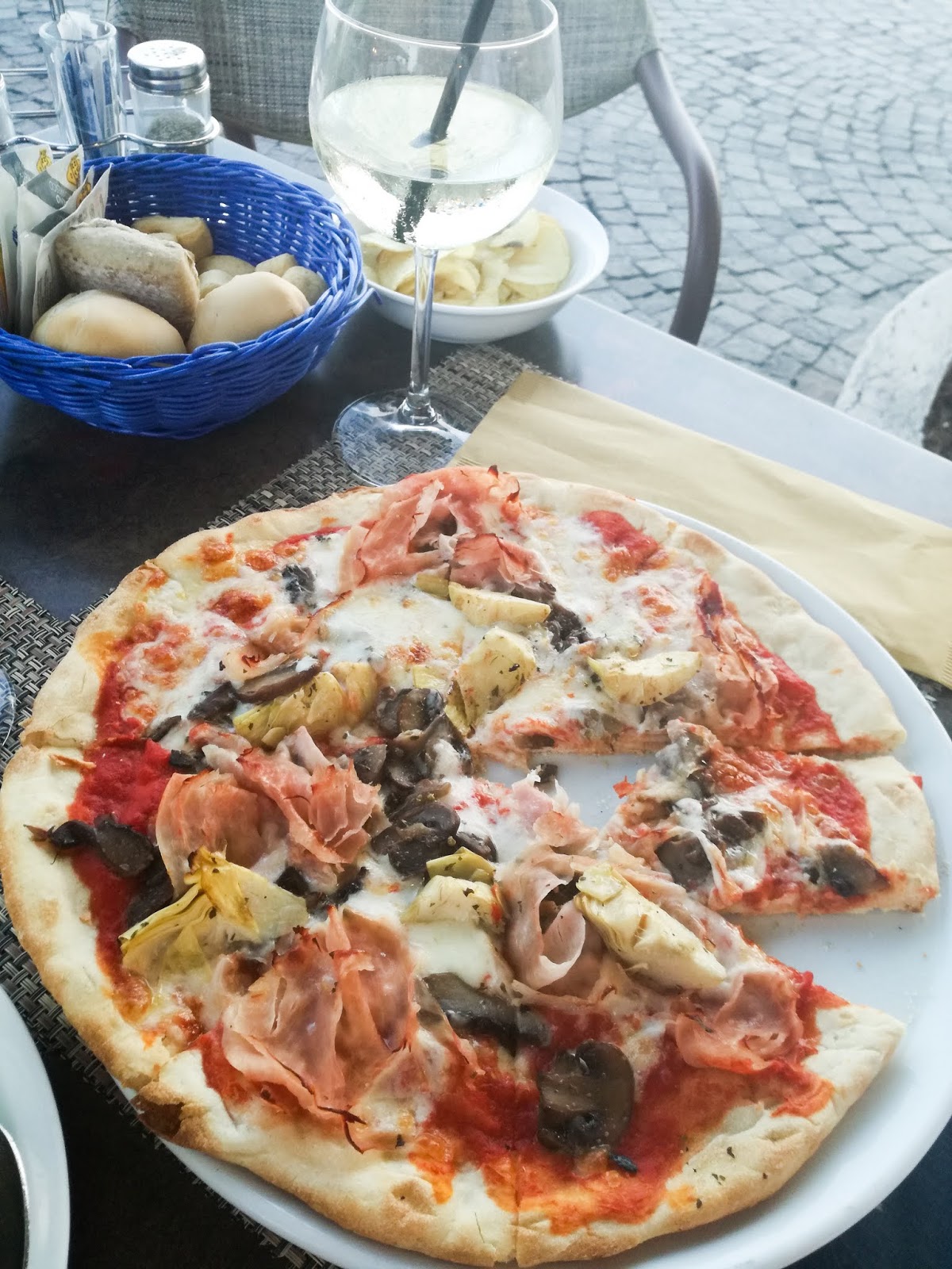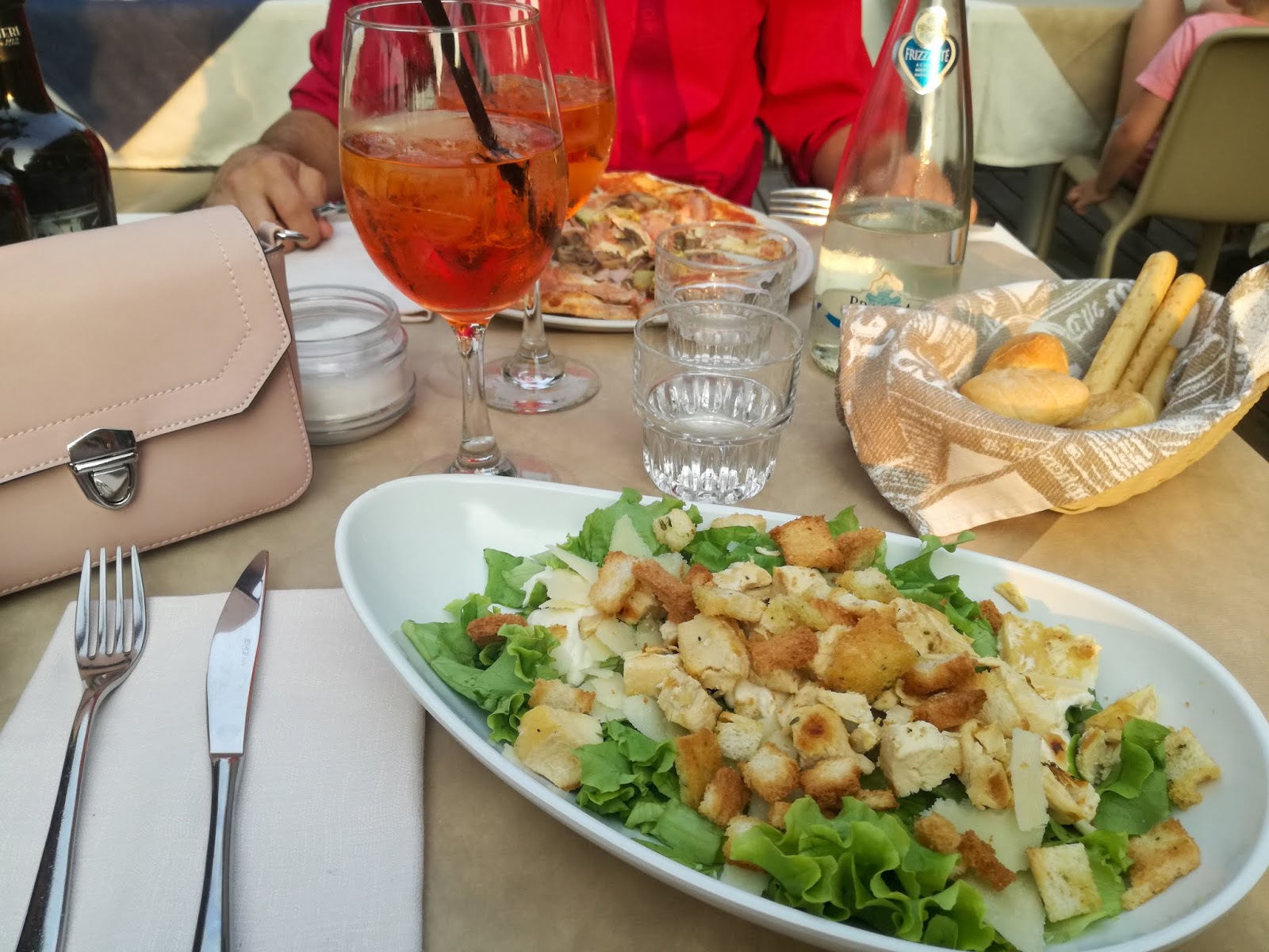 I had a Cesar´s Salad and Florian ate a pizza. The Aperol Spritz we ordered where huge. I would always go for wine and aperitifs restaurants offer on their menu since they are the affordable drinks. Beer is really pricey in Italy but also who wouldn´t enjoy a glass of red to his pasta or pizza or a glass of white with the fish over a beer.