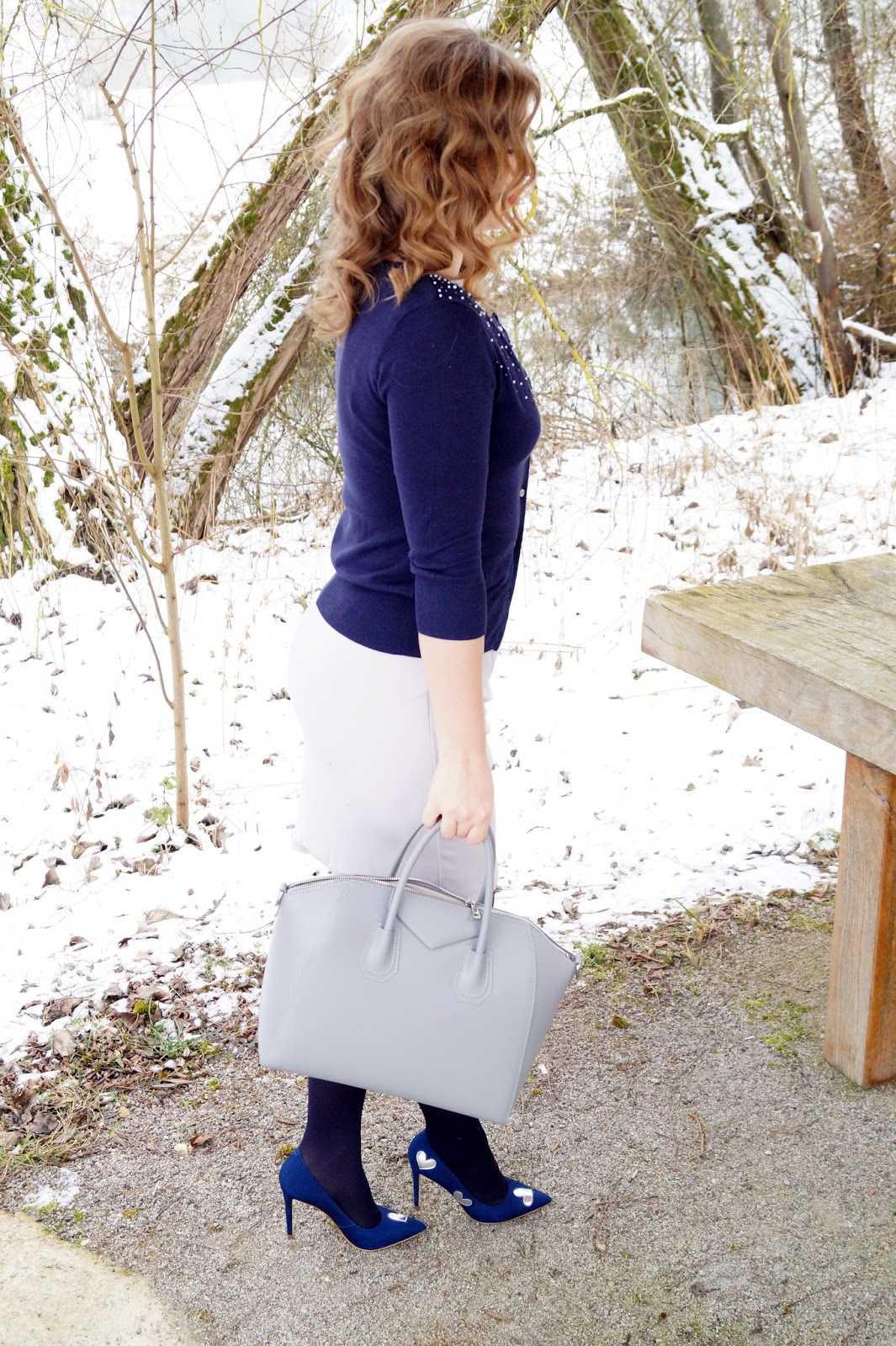 So of course I had to create a Valentine´s day look on the more non-traditional side in gray and navy but it turned out as a great look for a date night.