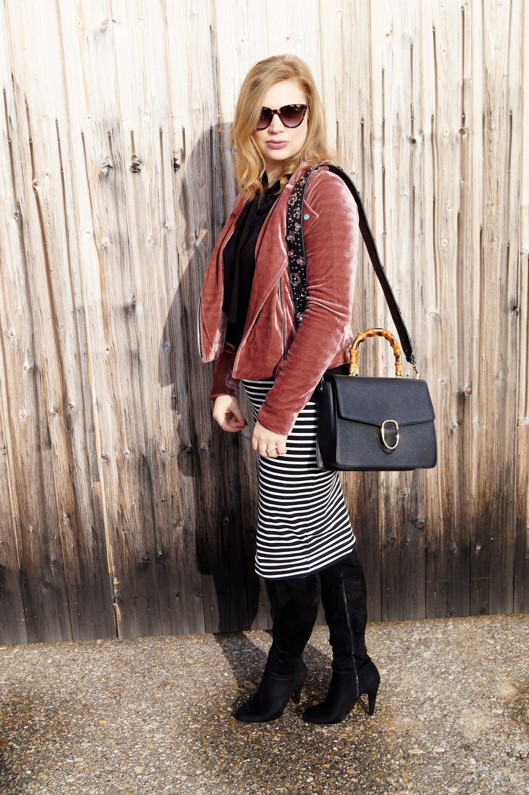 after our coming back from our getaway to Vienna there where lots of pretty new things in my suitcase. So after I unpacked I started outfit planing with my new things. I you have been following me for a little now you might now how much I love velvet. Doesn´t matter which piece it is I just love it.