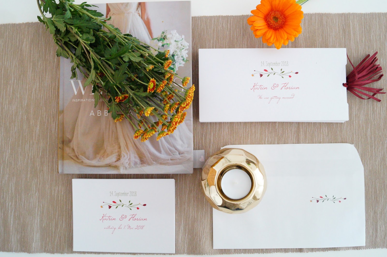 I wanted to find a place where I could get everything I needed in the same style which means invitations, rsvp cards, envelopes, menus and place cards. They should also have thank you cards for after the wedding. I found some I liked on Kartenmacherei.de.
