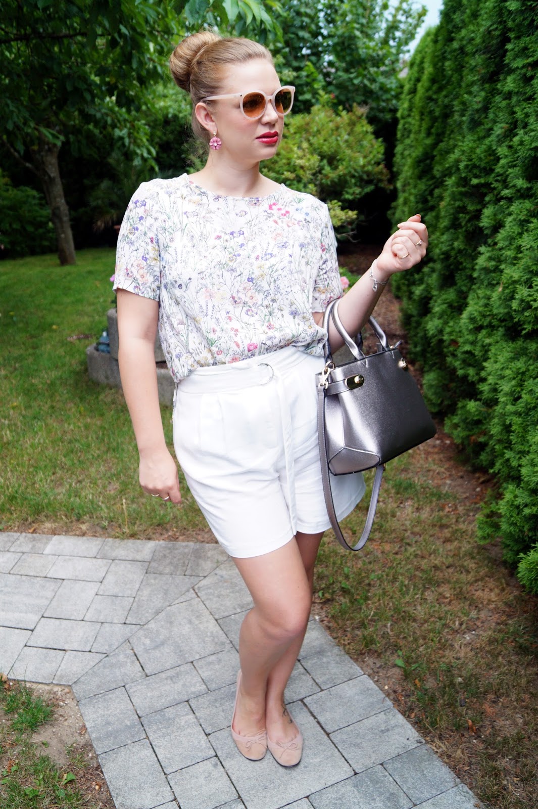high waisted shorts H&M similar here and here / shirt H&M similar here / ballet flats Buffalo similar here, here and here / bag Carpisa / sunnies H&M