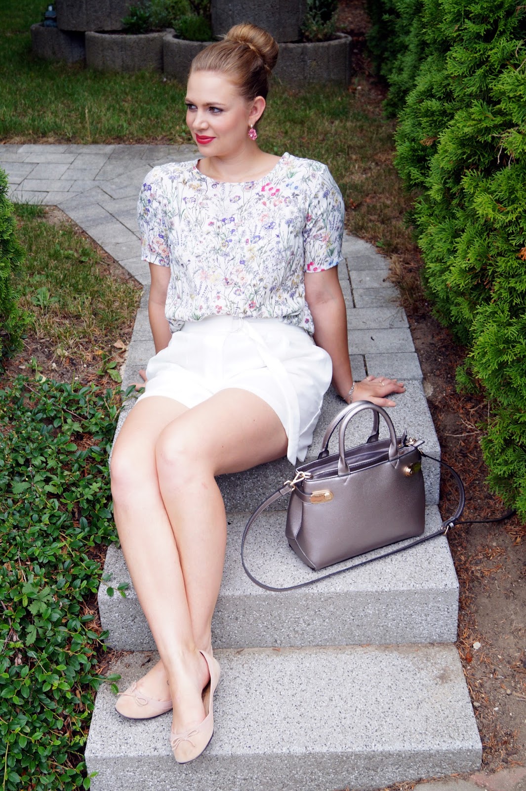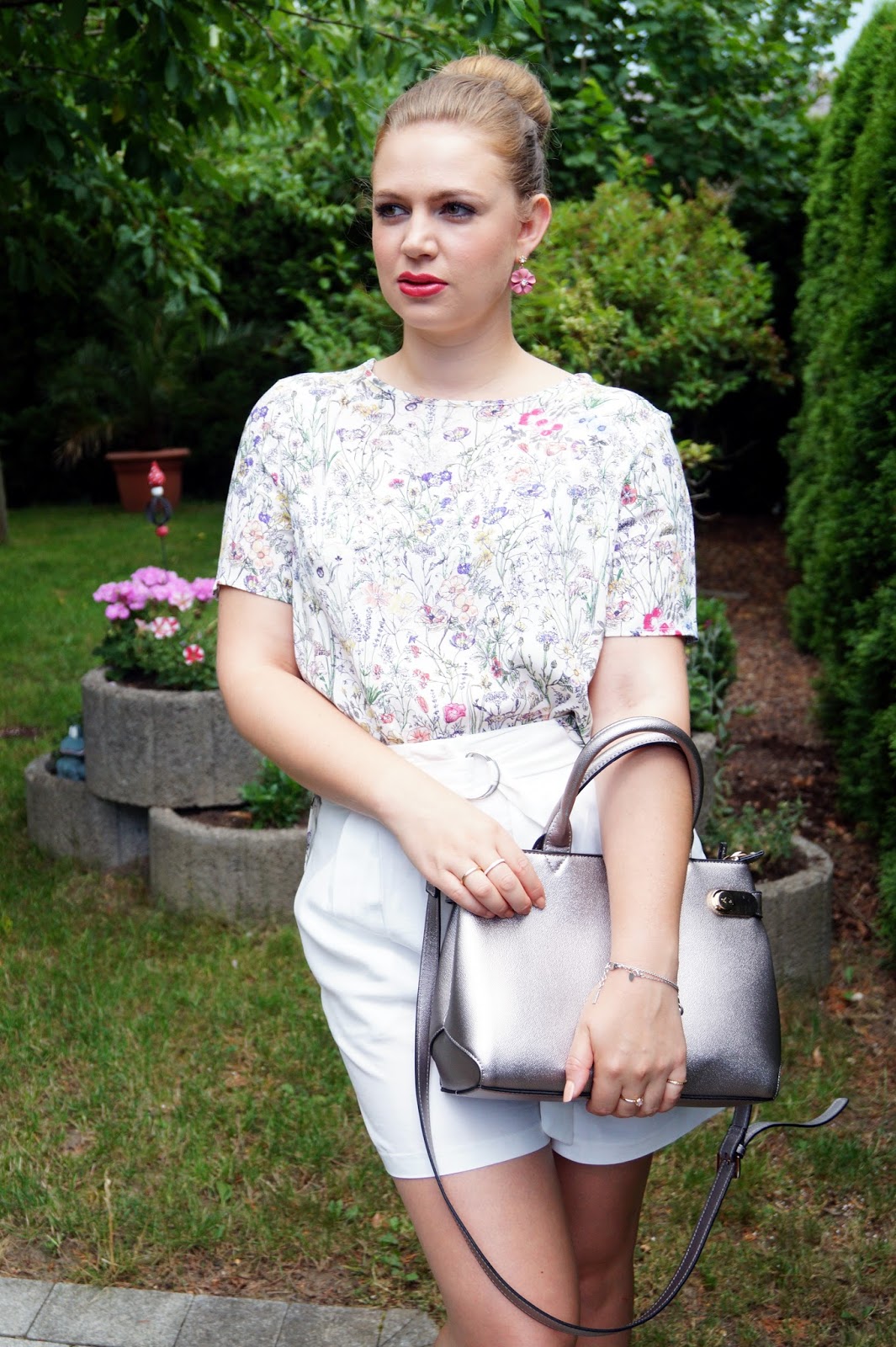 I paired this pretty and airy pair of shorts with a creme top with the most beautiful flower pattern I have seen in a while (you know I am all about flowers). Usually I wanted to go with a pair of wedges but I had worn this outfit to our line dance summer bbq so I´d rather went with a pair of flat shoes.