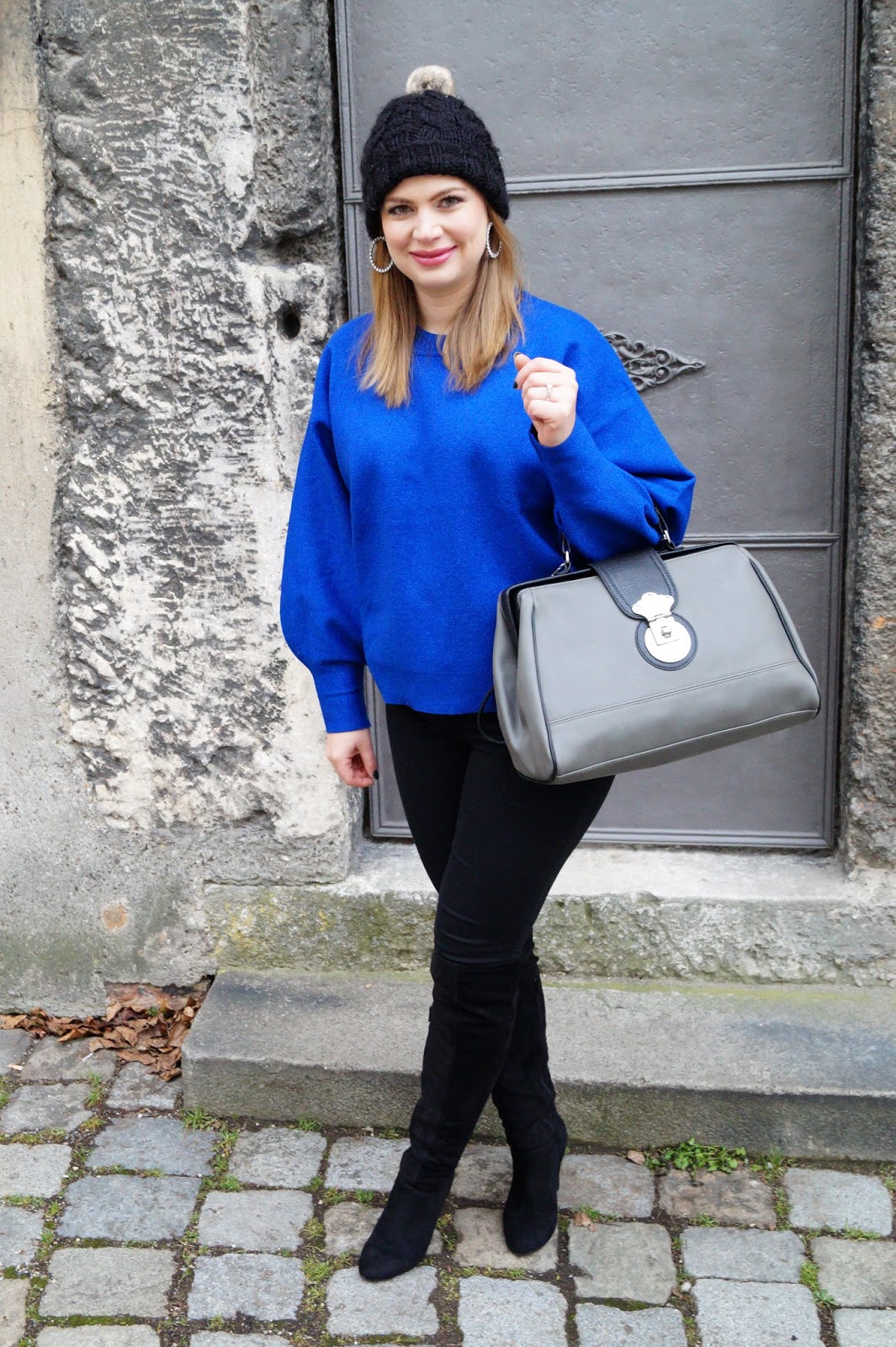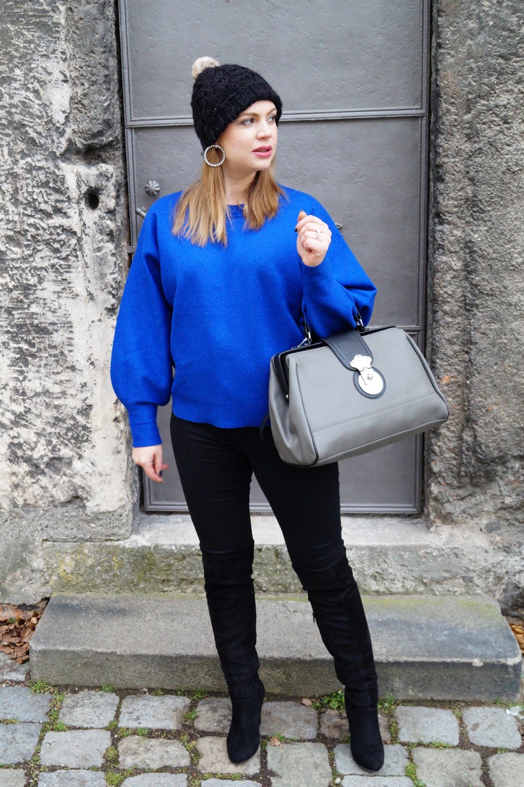 after all the festivities and the bunch of holiday looks I was wearing throughout the best days of the year I just can´t let get of the sparkle so I got myself this beautiful bold blue sweater with fine sparkes all over. It also was on sale so it really hurt no one.