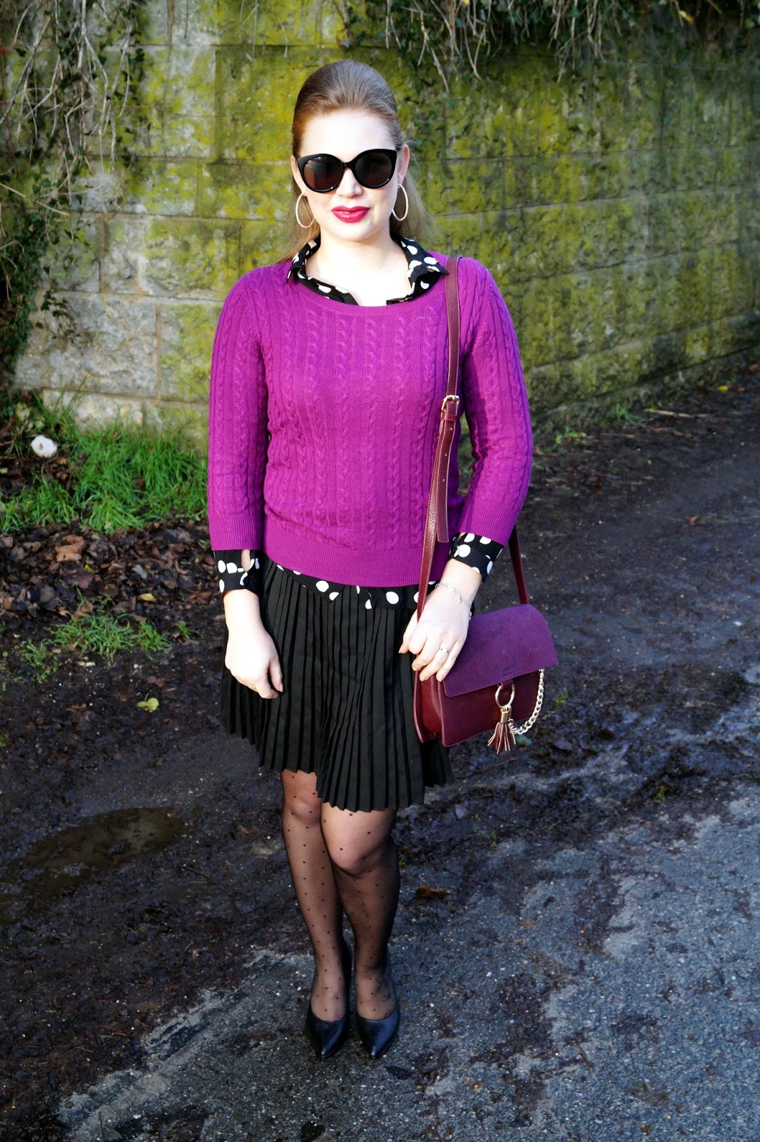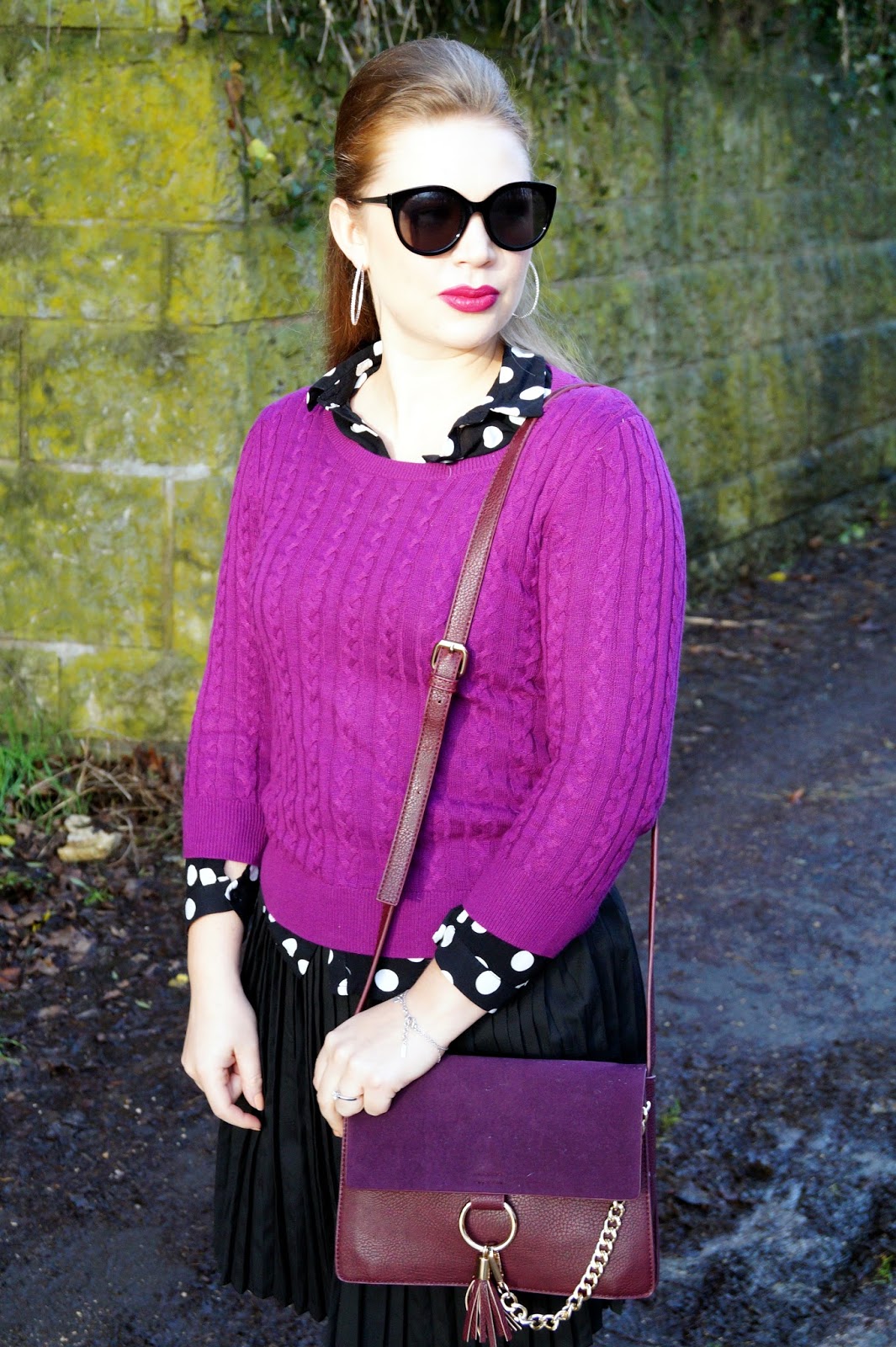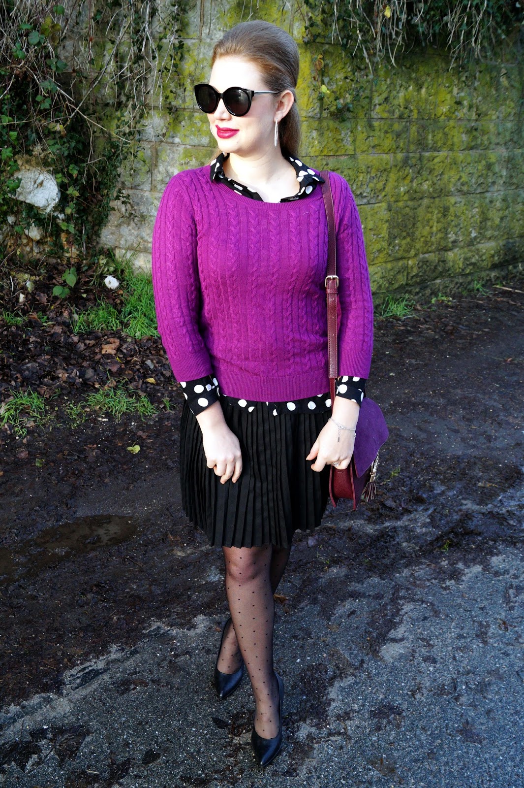 The purple pullover matches perrfectly with my favorite lipstick color ever. It is Rebel from MAC. The color is just a beautiful rich plum shade, not too dark and not too bluish. This one works for probably every skin tone.