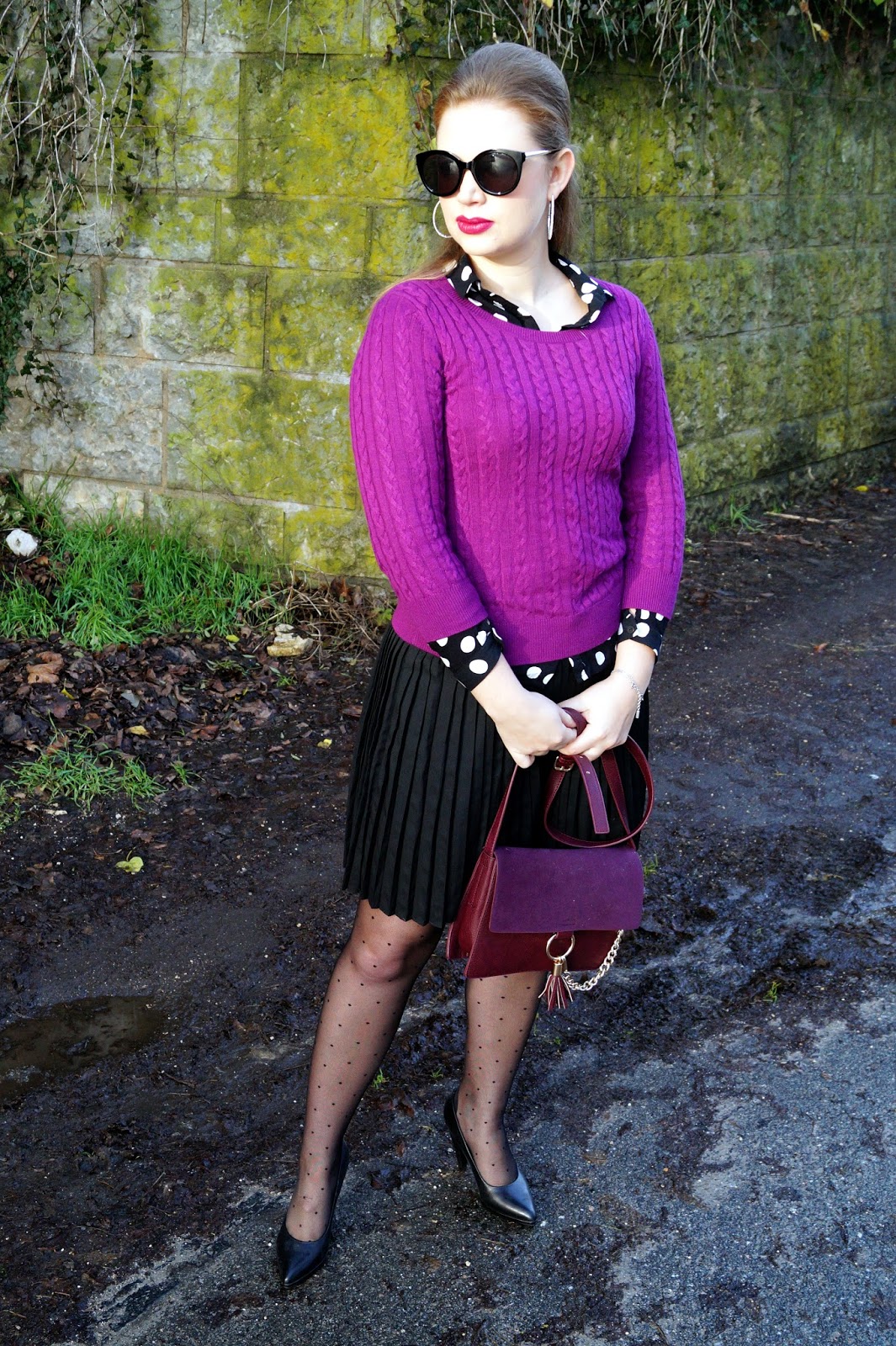 tights Kunert similar here and here / skirt H&M on sale!! / pullover H&M old similar here and here / bag bonprix old similar here and here / heels fifth avenue old similar here and here / lips Rebel MAC / sunnies H&M on sale !! / polka dots blouse H&M old similar here and here / hoops H&M