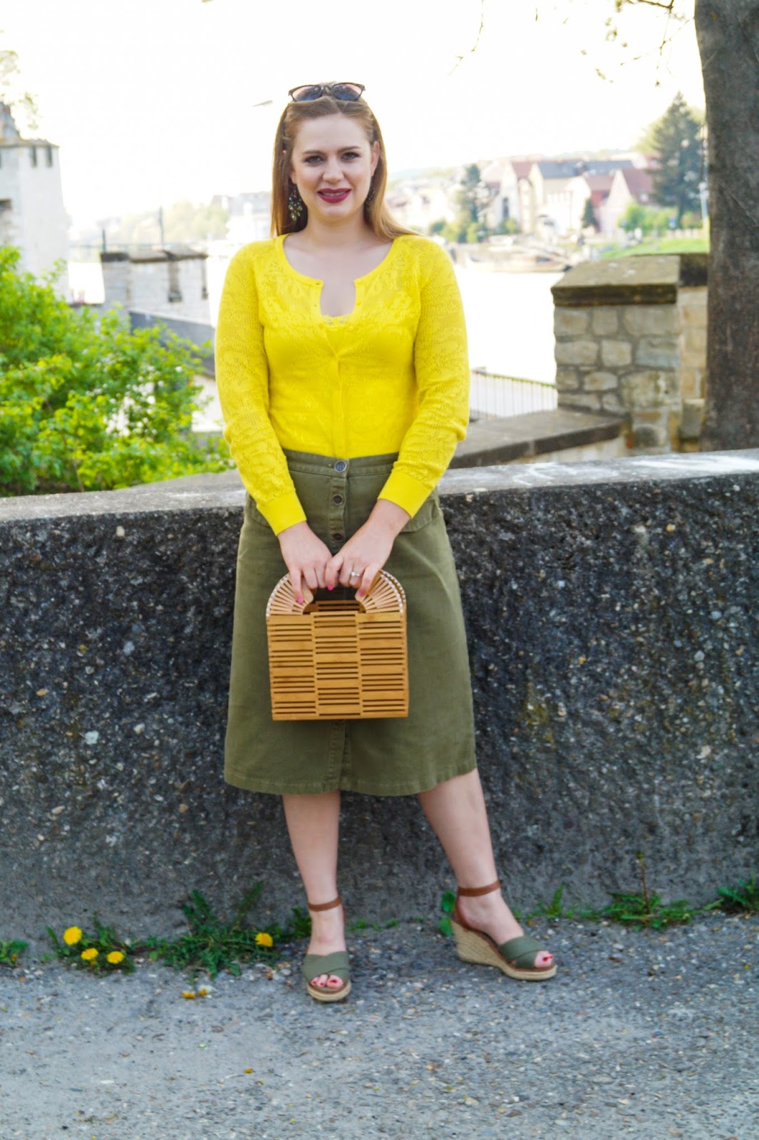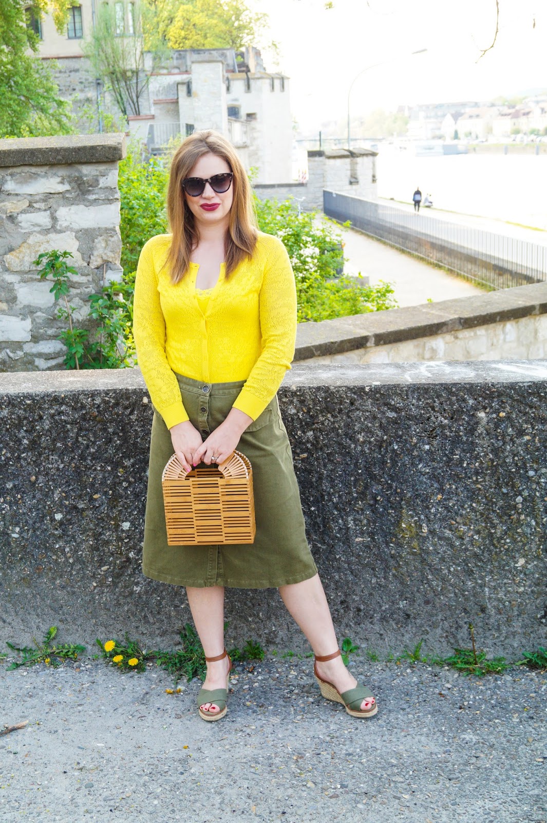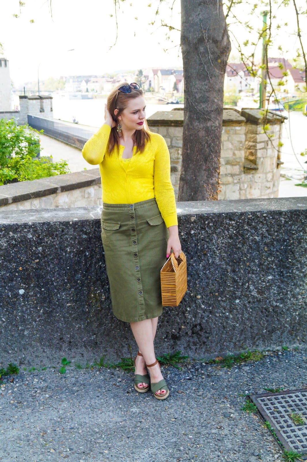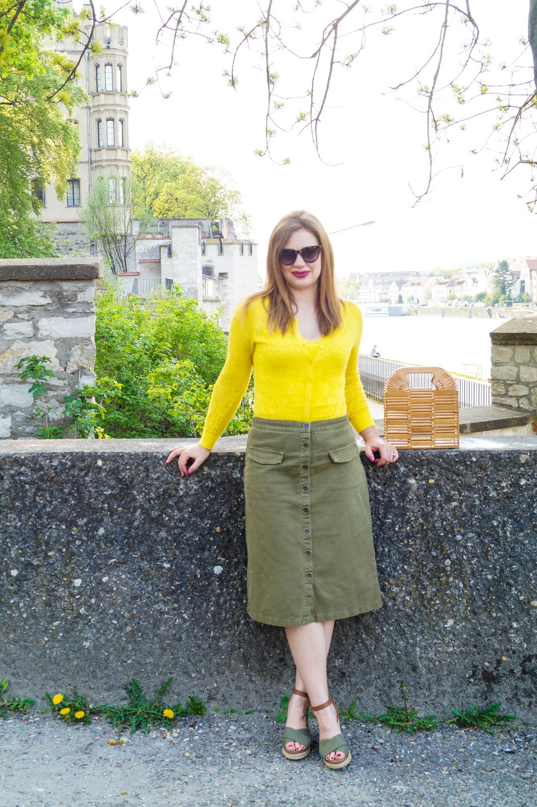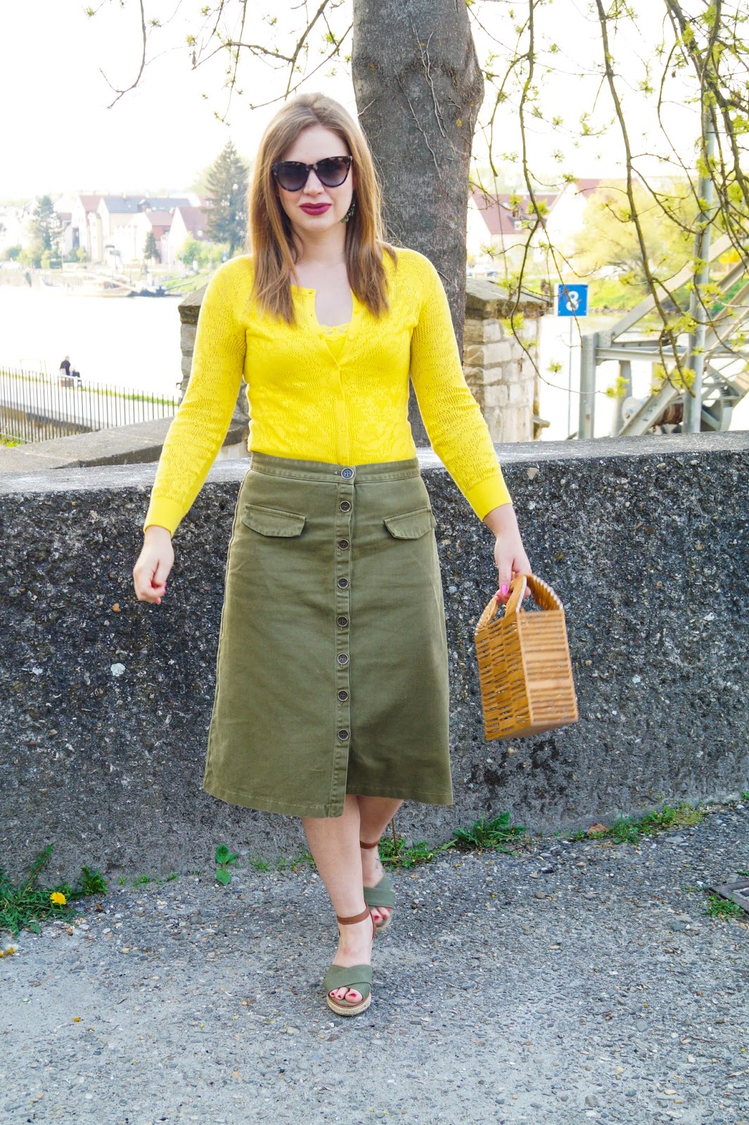 The olive green is such a nice color and I think it really goes with a lot and I mean a lot of colors. It works with blush and pink and red. Looks clean and chic with nude and white. I paired it with yellow and there is still so much more.